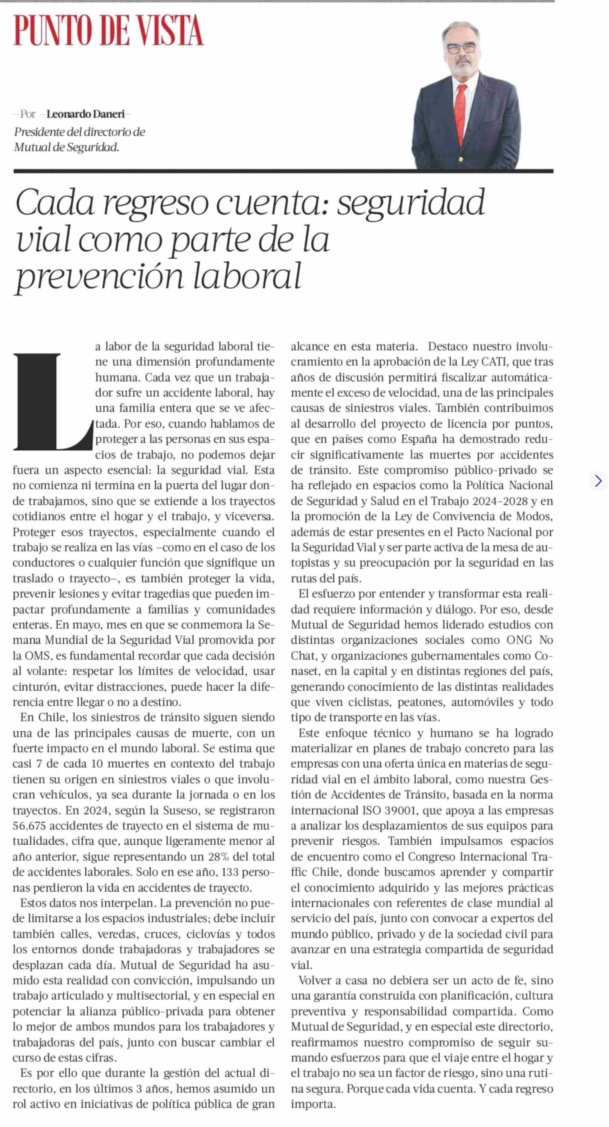 COLUMNAS DE OPINIÓN: Cada regreso cuenta: seguridad vial como parte de la prevención laboral
