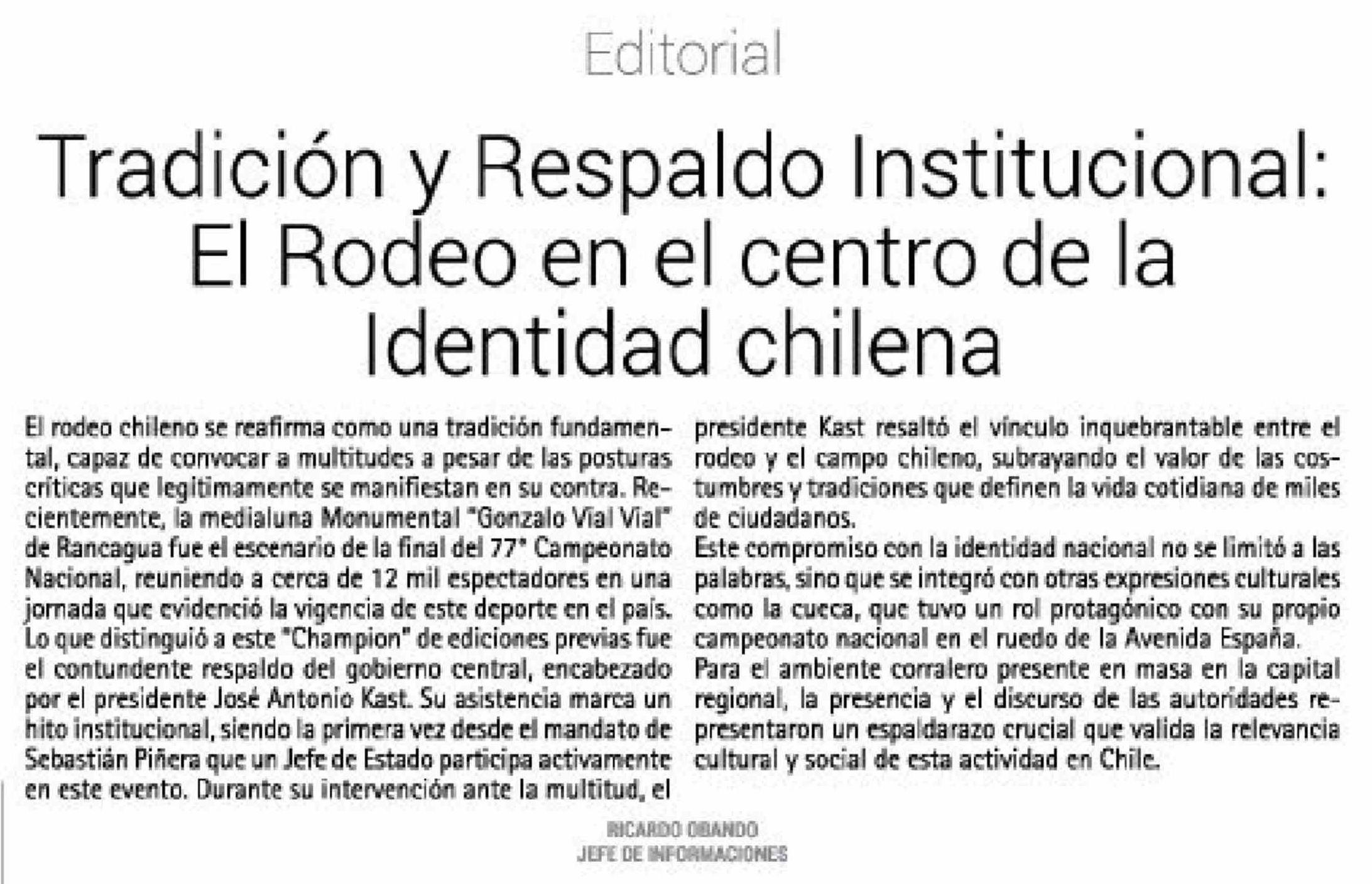 Editorial: Tradición y Respaldo Institucional: El Rodeo en el centro de la Identidad chilena