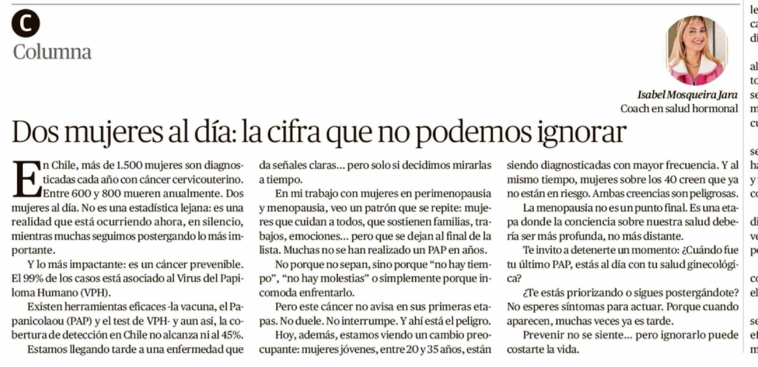 Título: Columnas de Opinión: Dos mujeres al día: la cifra que no podemos ignorar
