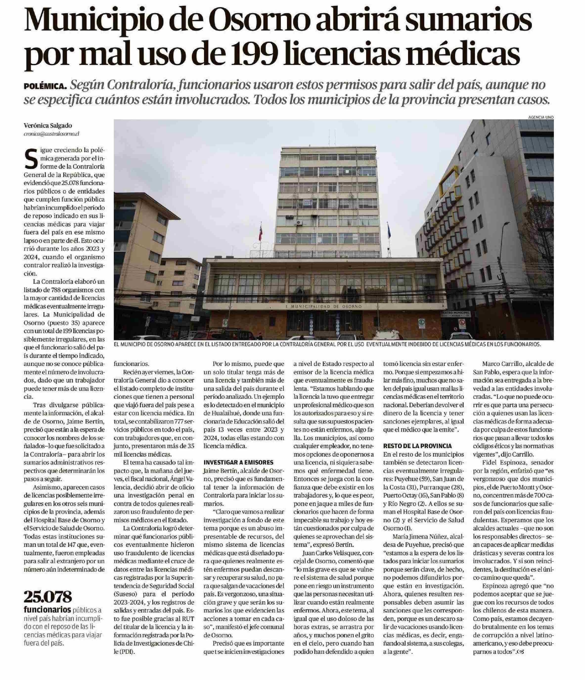 Municipio de Osorno abrirá sumarios por mal uso de 199 licencias médicas
