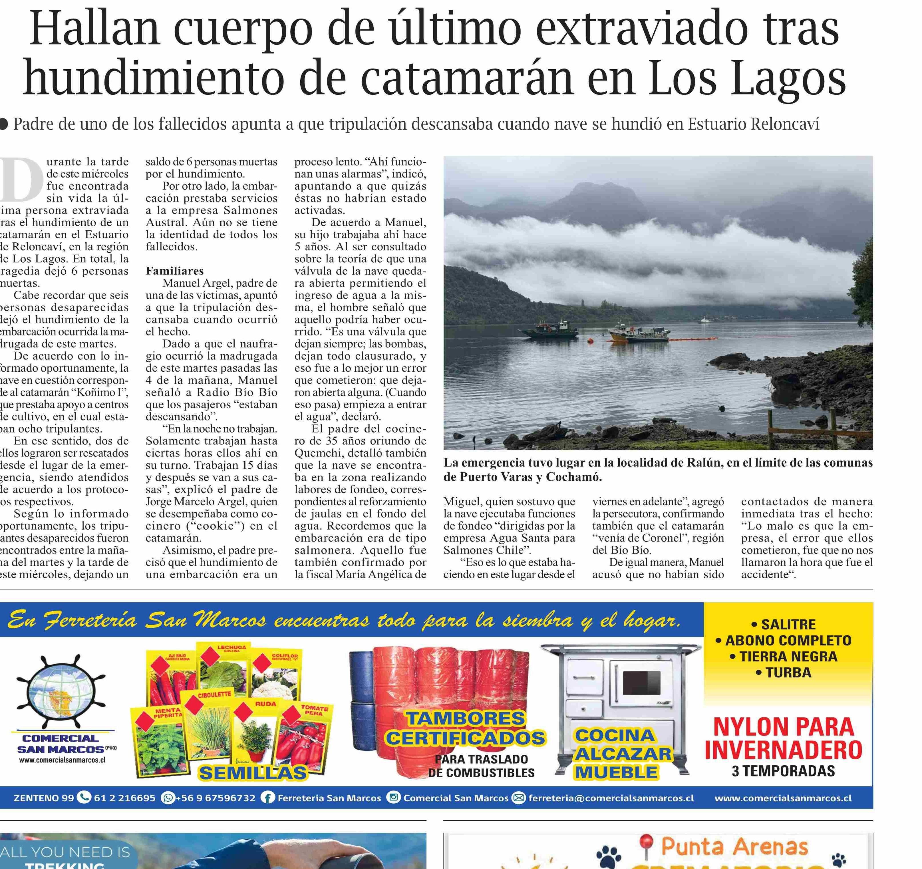 Hallan cuerpo de último extraviado tras hundimiento de catamarán en Los Lagos