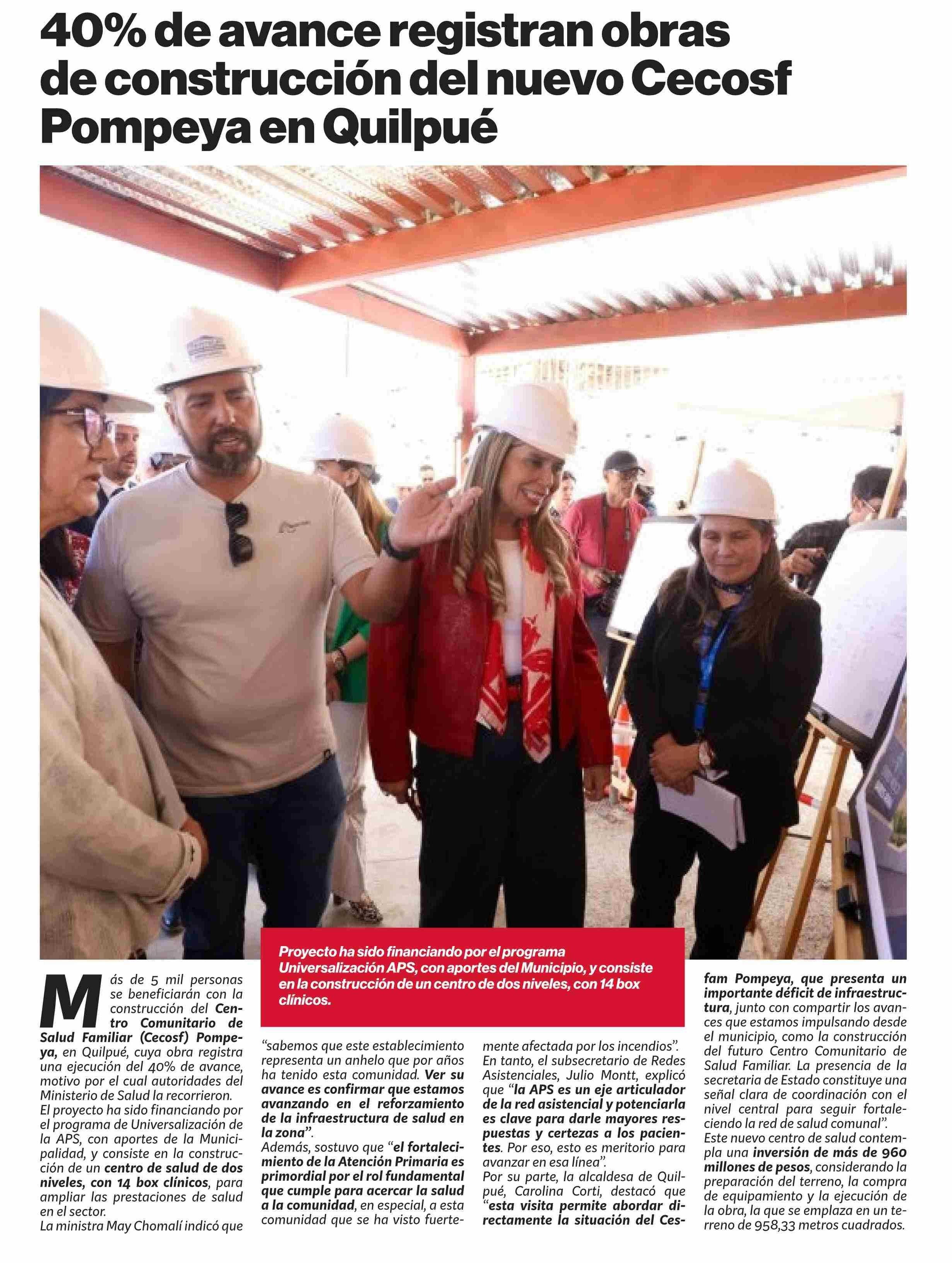 40% de avance registran obras de construcción del nuevo Cecosf Pompeya en Quilpué