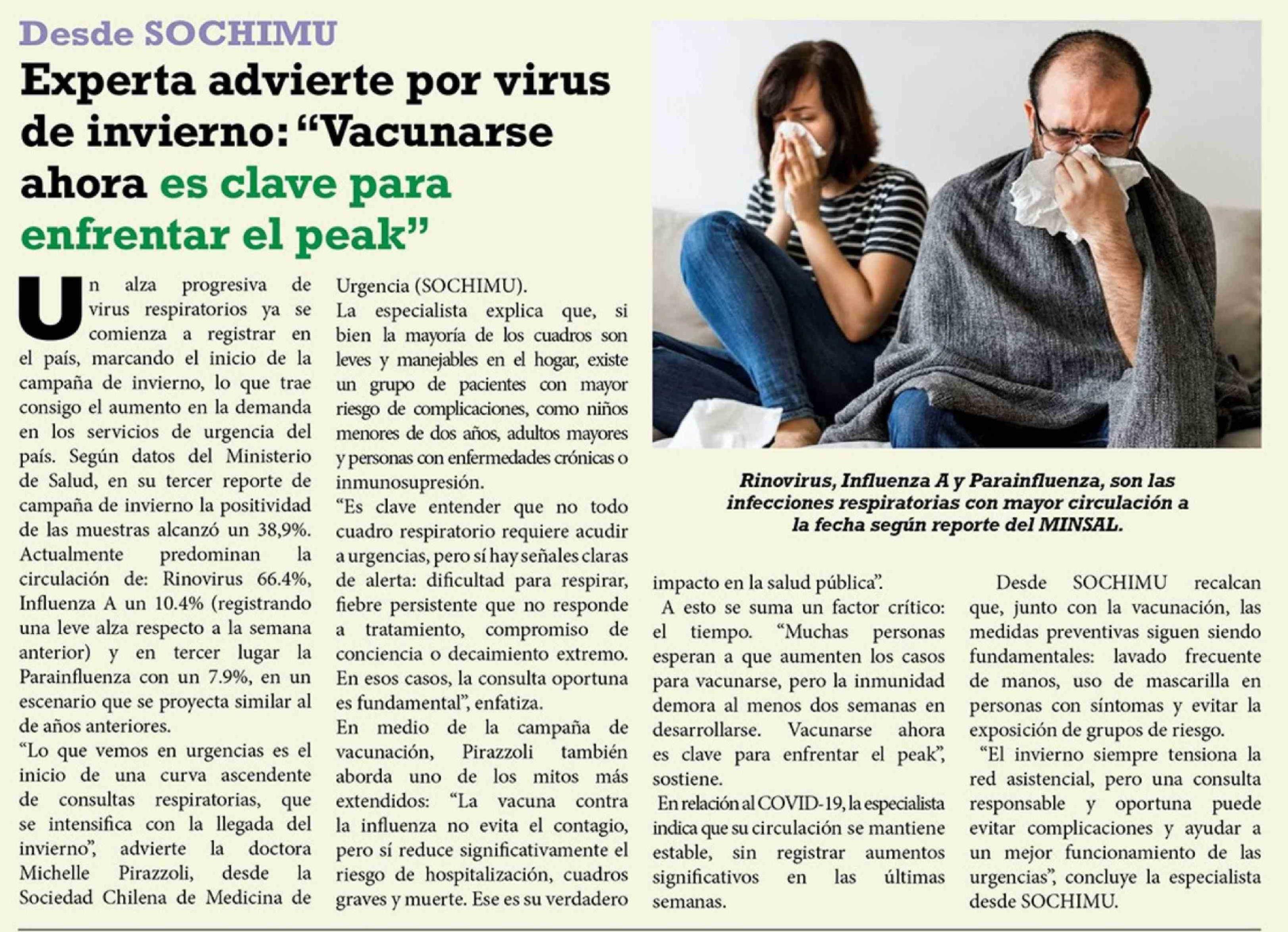 Experta advierte por virus de invierno: "Vacunarse ahora es clave para enfrentar el peak"