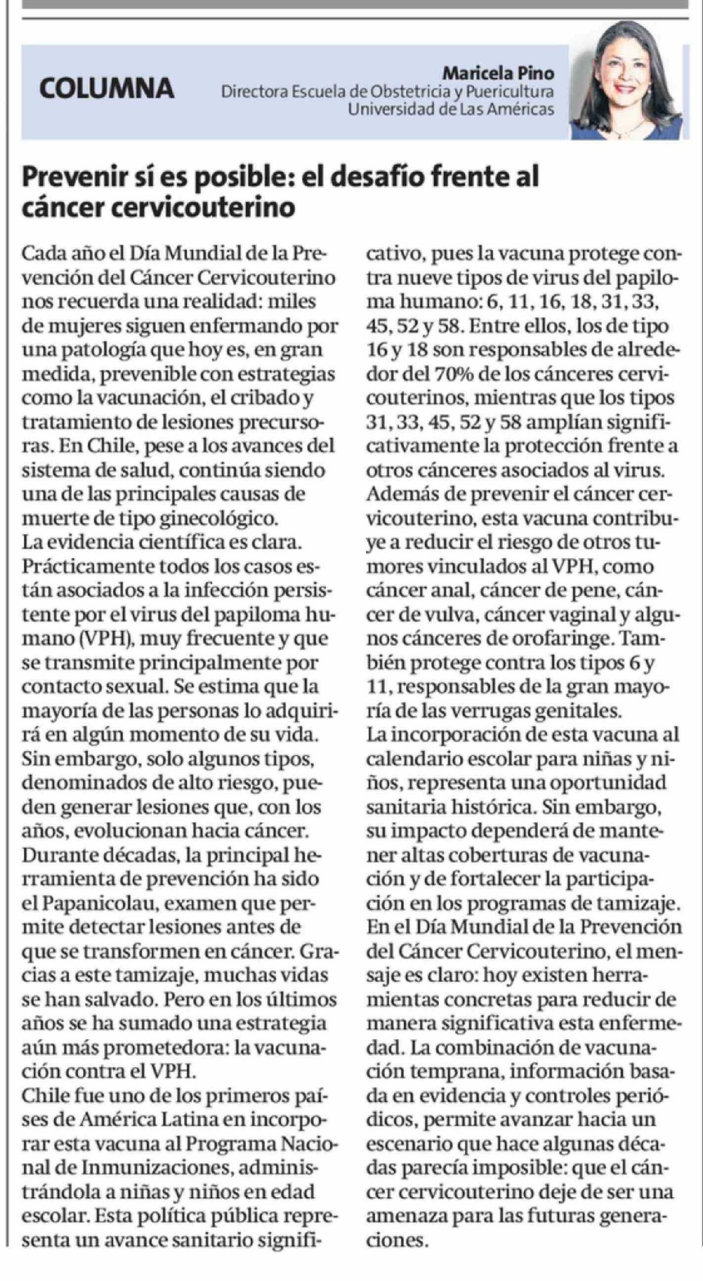 Columnas de Opinión: Prevenir si es posible: el desafio frente al cáncer cervicouterino