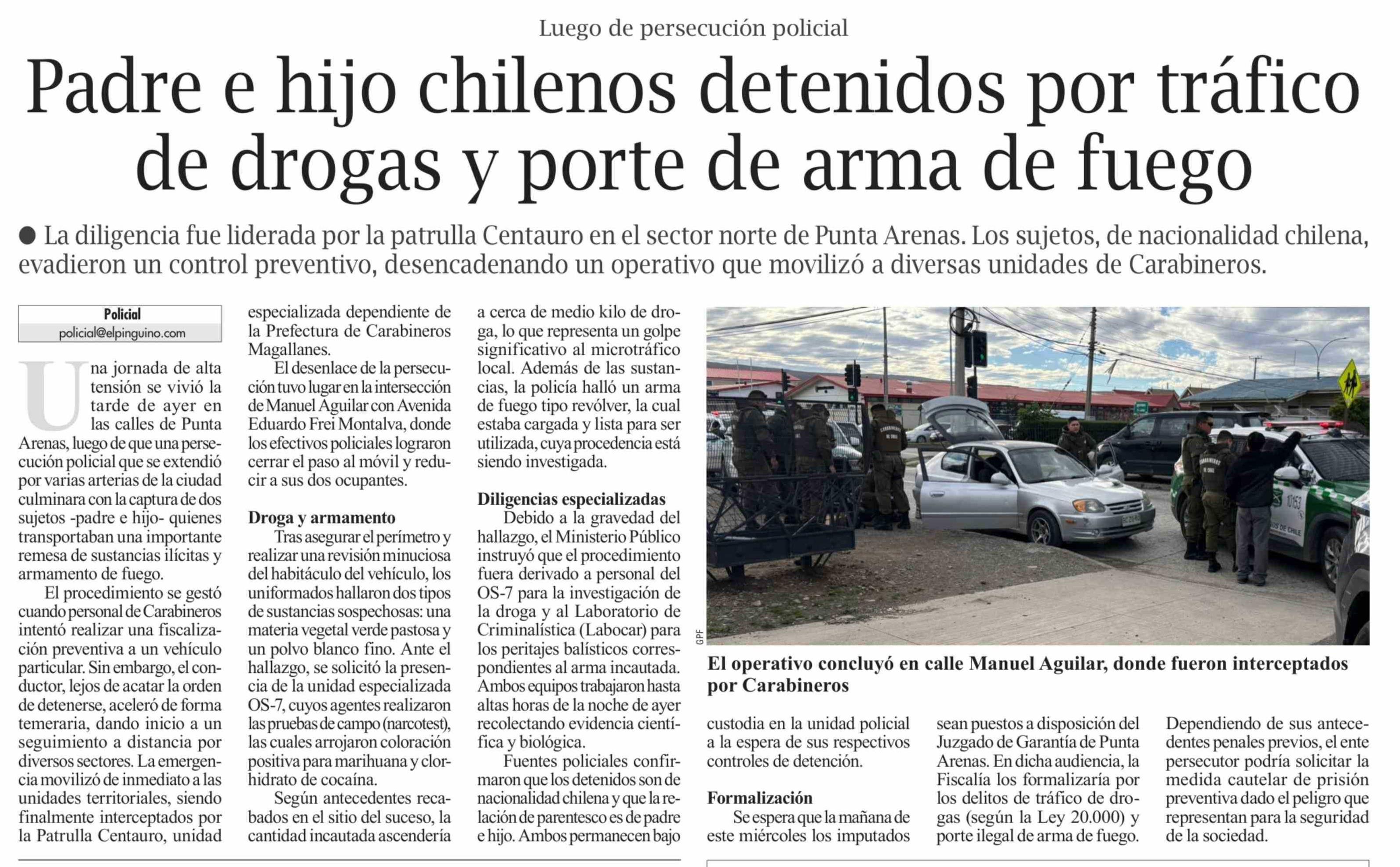 Padre e hijo chilenos detenidos por tráfico de drogas y porte de arma de fuego