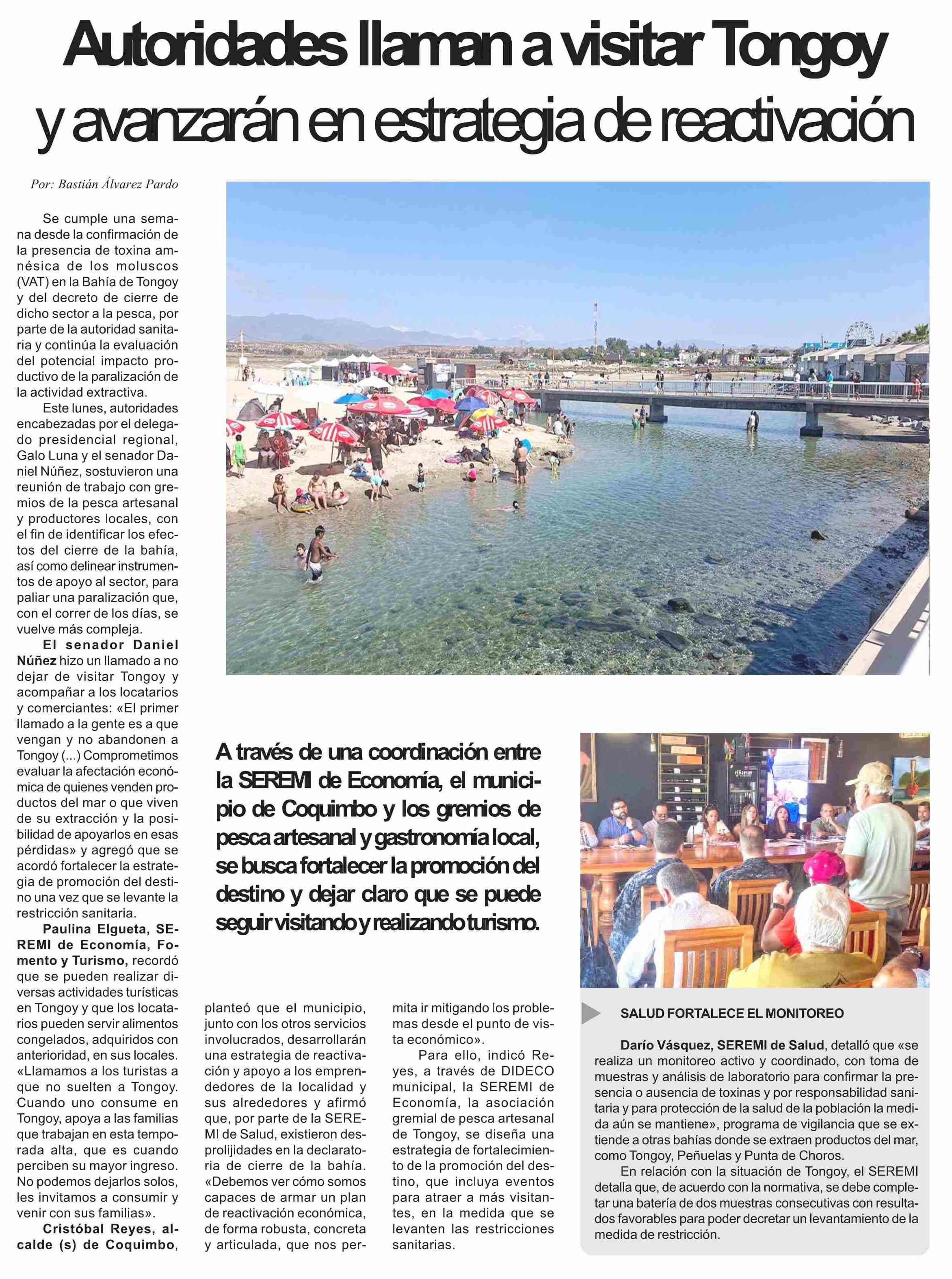 Título: Autoridades llaman a visitar Tongoy y avanzarán en estrategia de reactivación