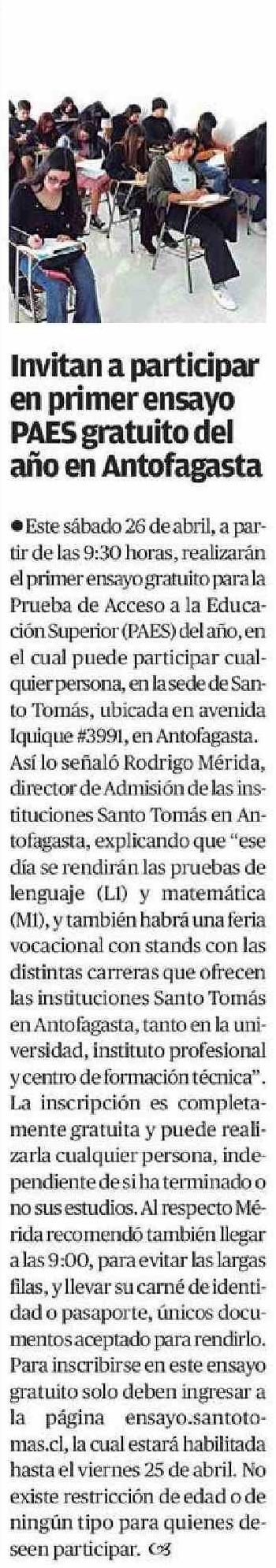 Invitan a participar en primer ensayo PAES gratuito del año en Antofagasta