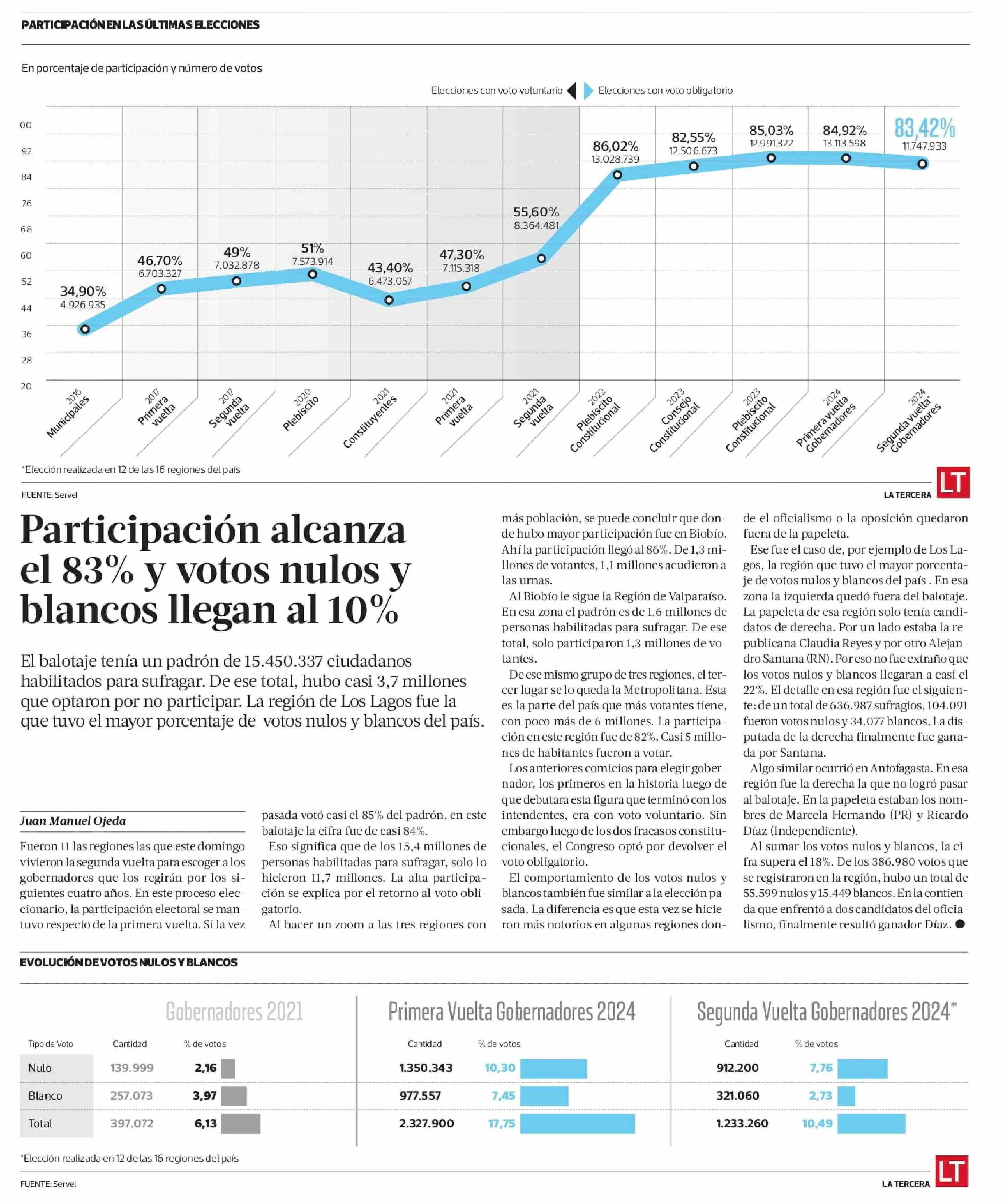 Participación alcanza el 83% y votos nulos y blancos llegan al 10%