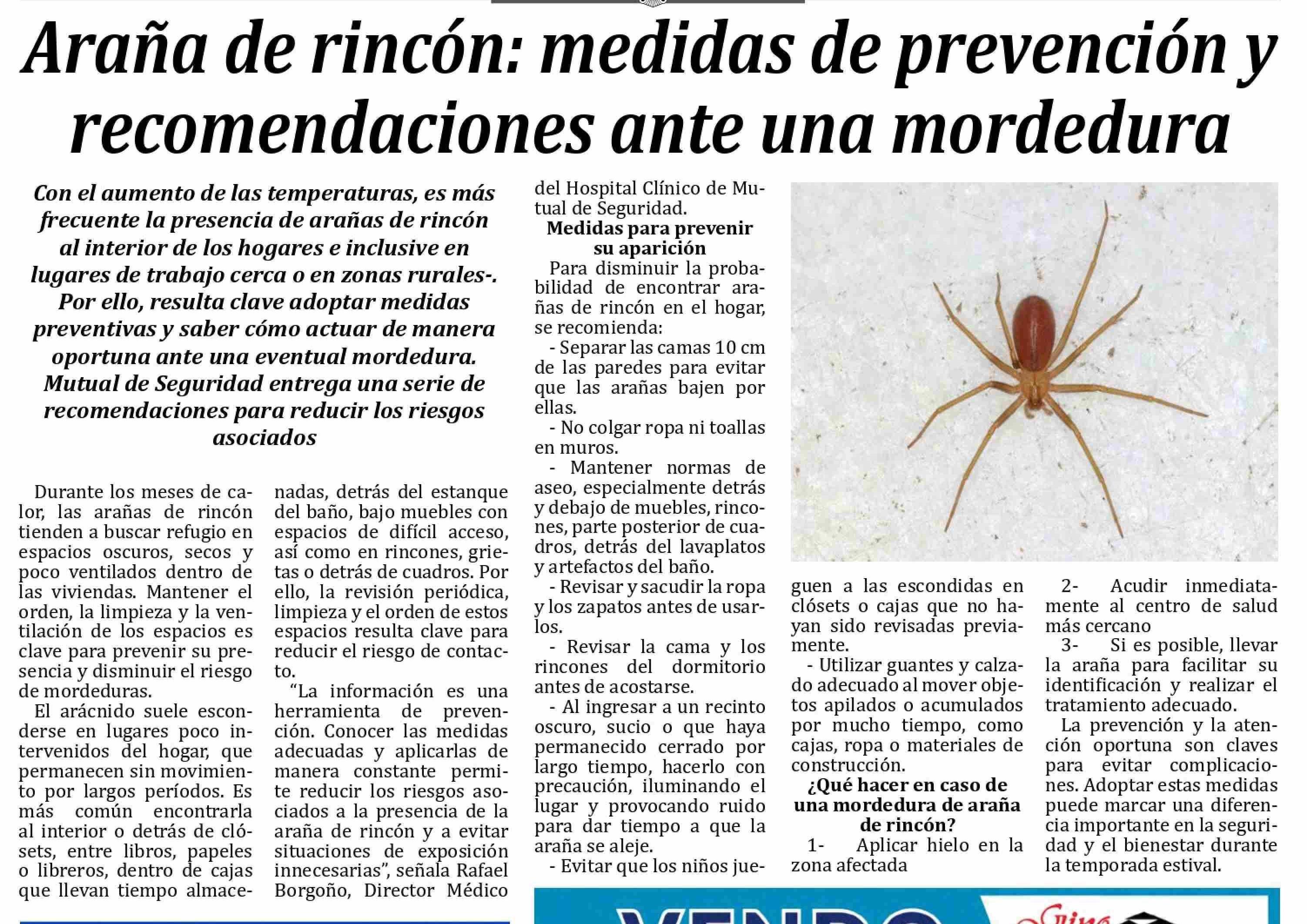 Araña de rincón: medidas de prevención y recomendaciones ante una mordedura
