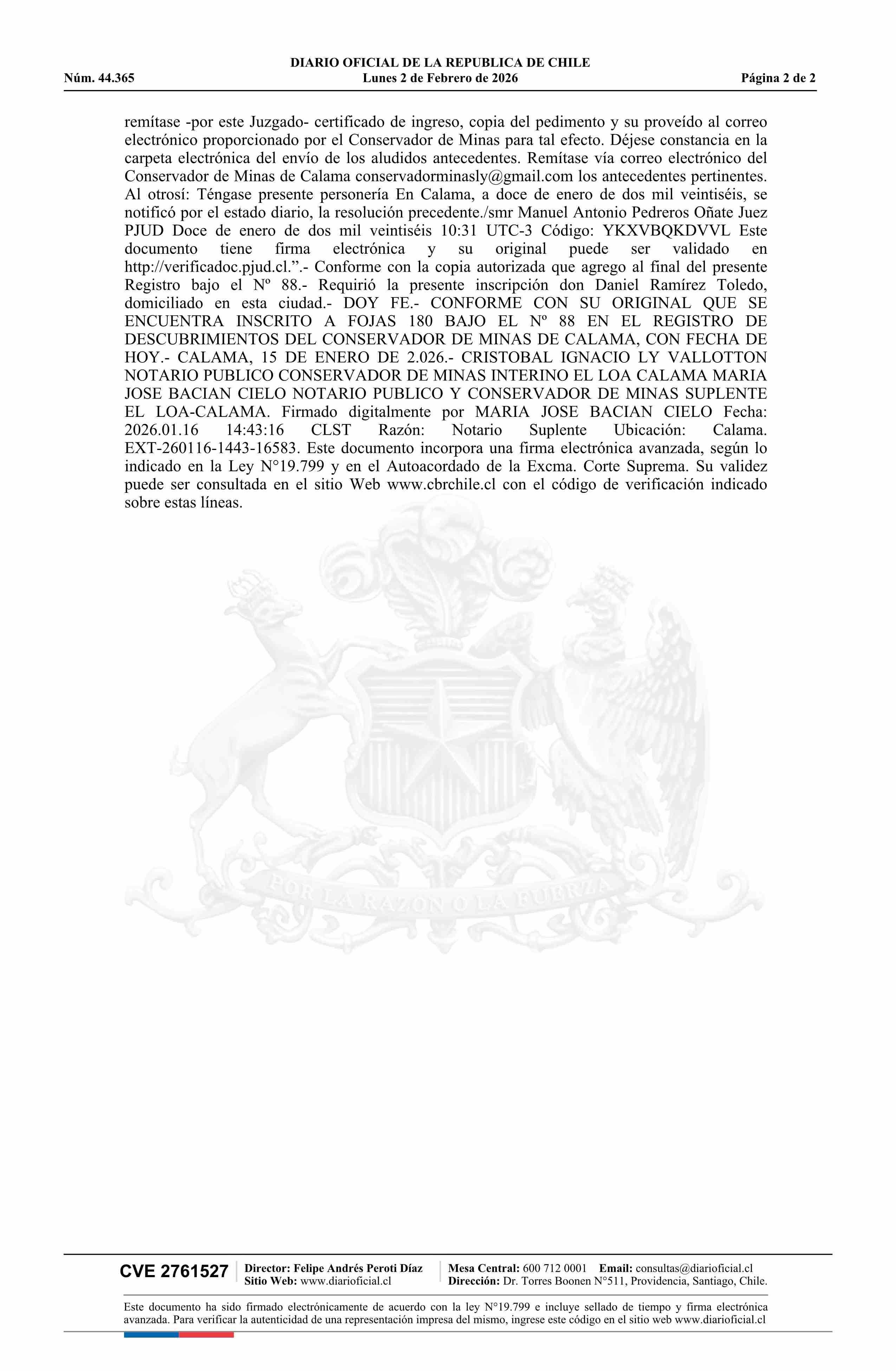DIARIO OFICIAL CHILE - BOLETÍN OFICIAL DE MINERÍA (DIARIO OFICIAL CHILE – BOM – PEDIMENTOS MINEROS)