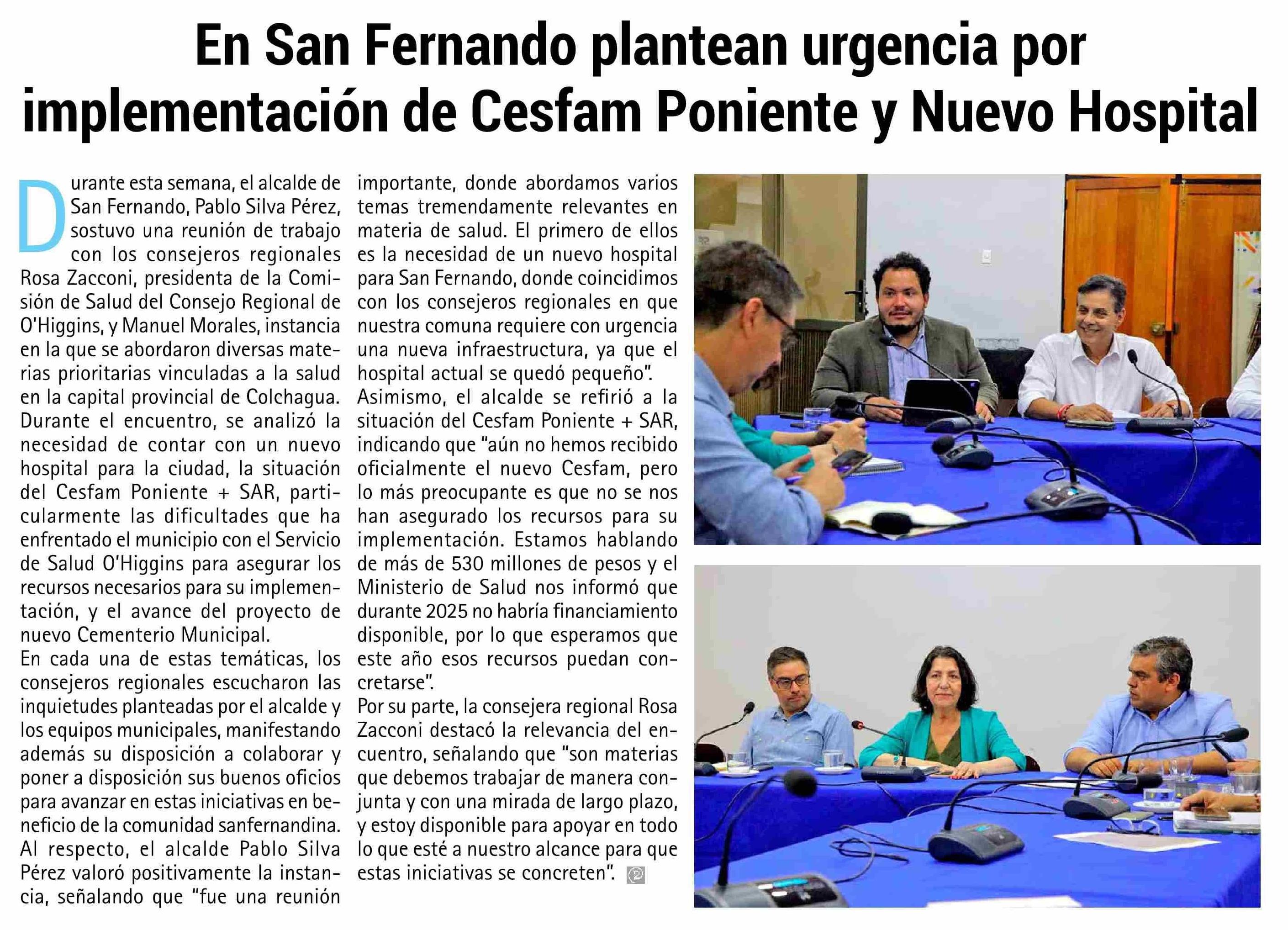 En San Fernando plantean urgencia por implementación de Cesfam Poniente y Nuevo Hospital
