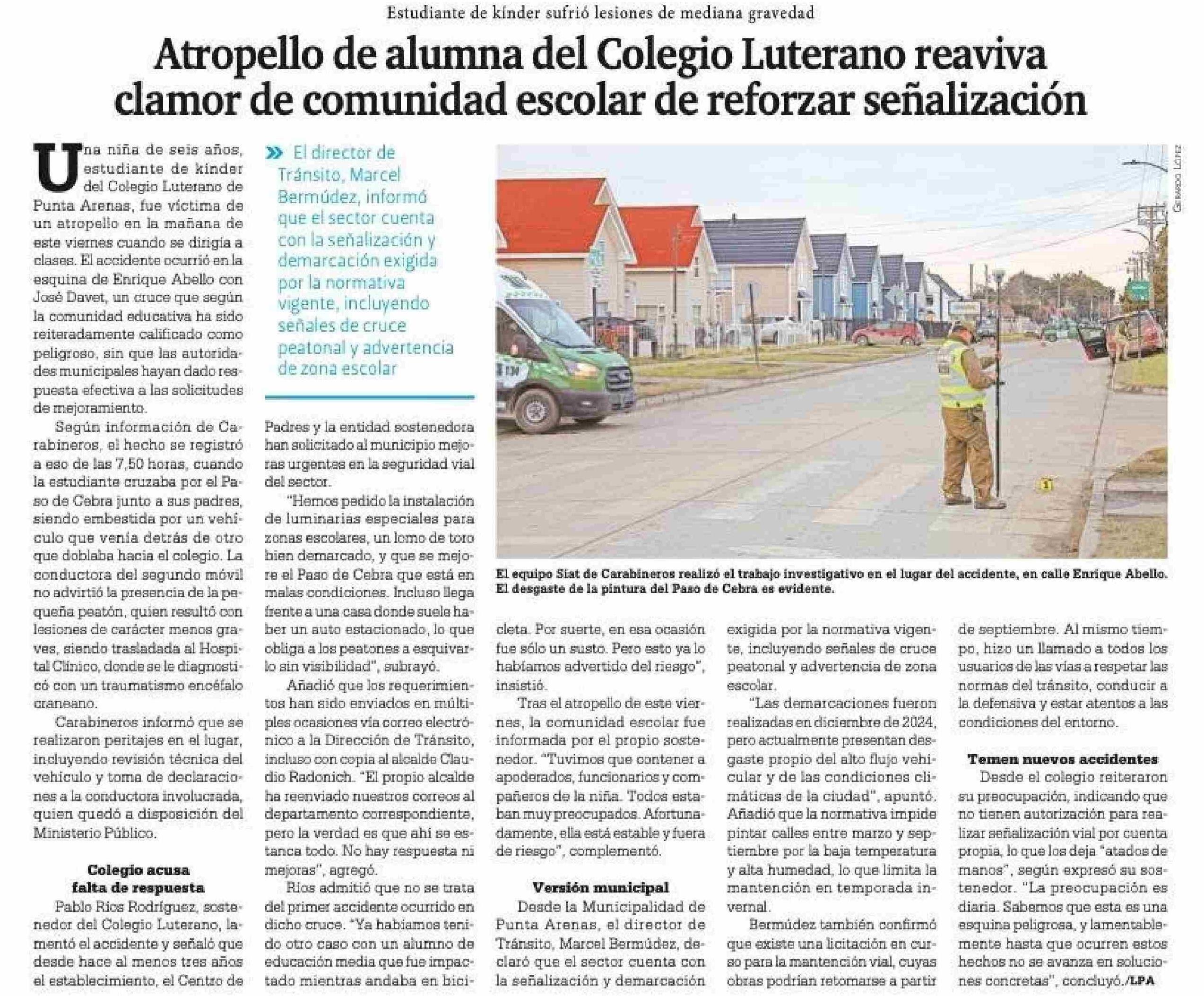Atropello de alumna del Colegio Luterano reaviva clamor de comunidad escolar de reforzar señalización