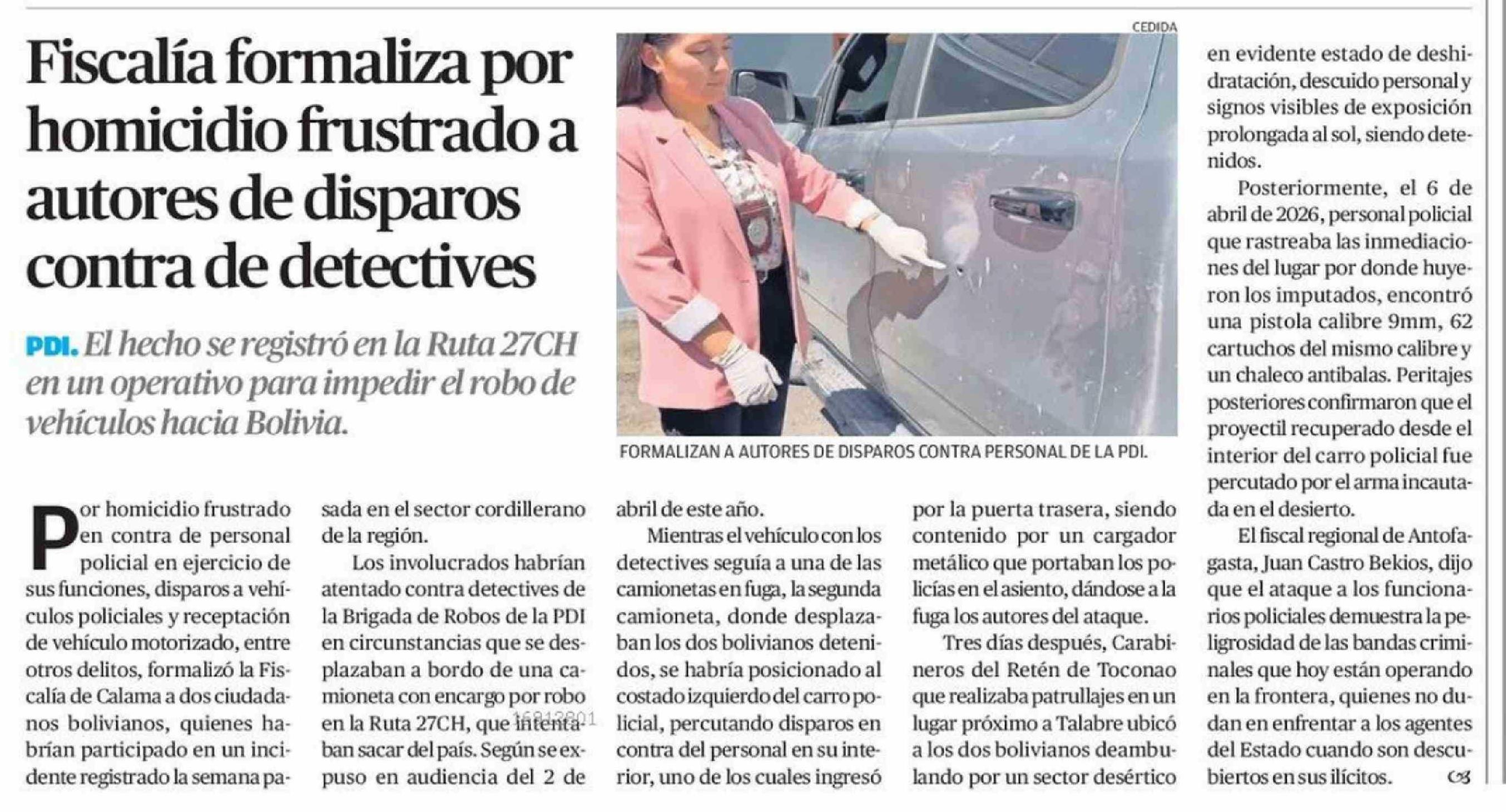 Fiscalía formaliza por homicidio frustrado a autores de disparos contra de detectives