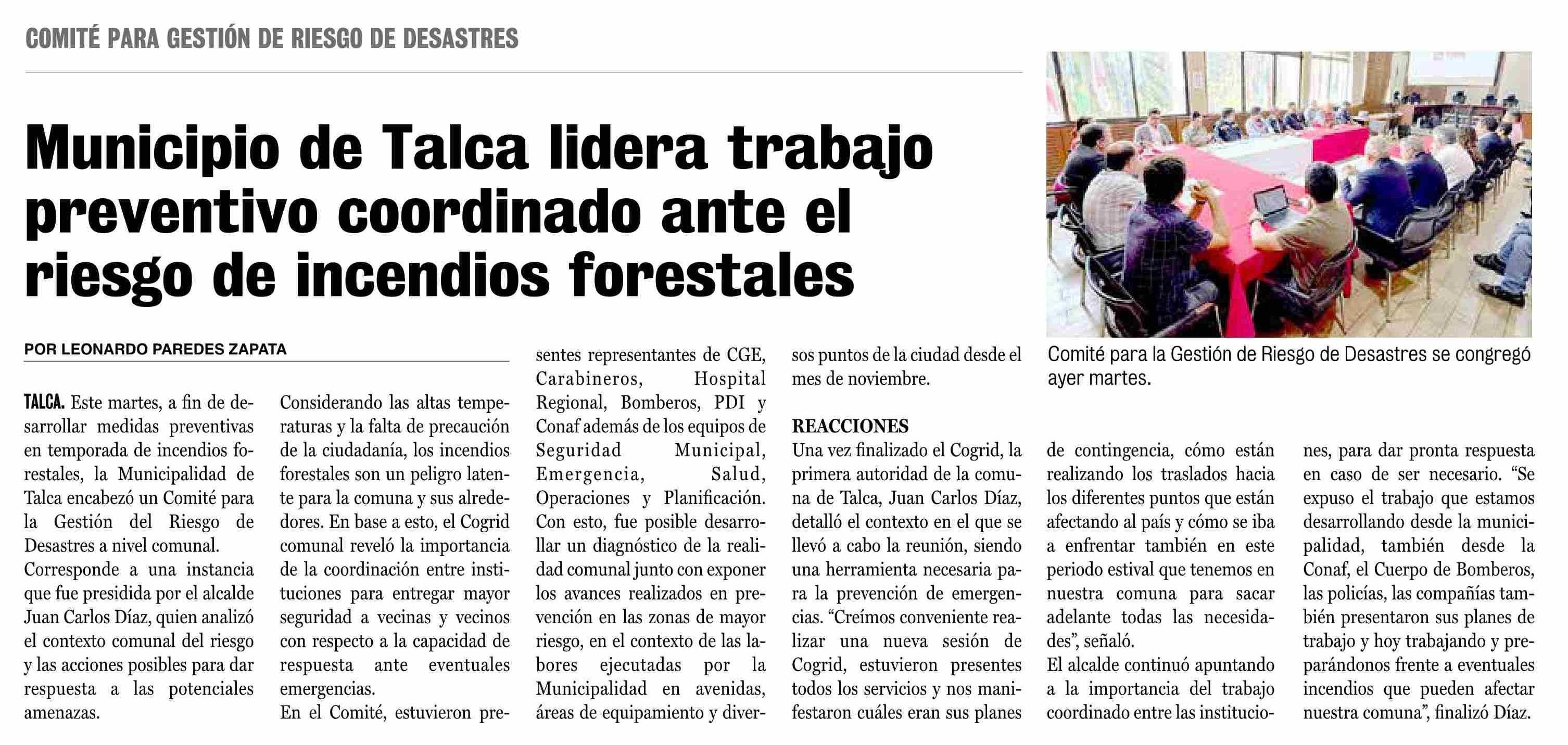 Título: Municipio de Talca lidera trabajo preventivo coordinado ante el riesgo de incendios forestales