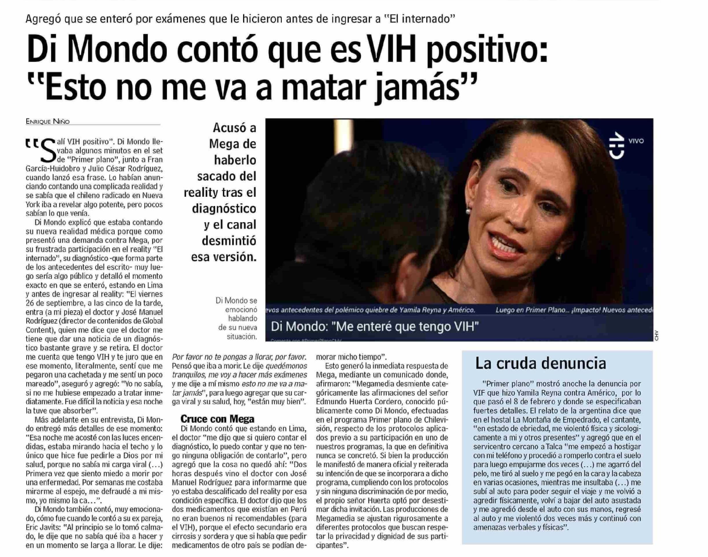Di Mondo contó que es VIH positivo: “Esto no me va a matar jamás”