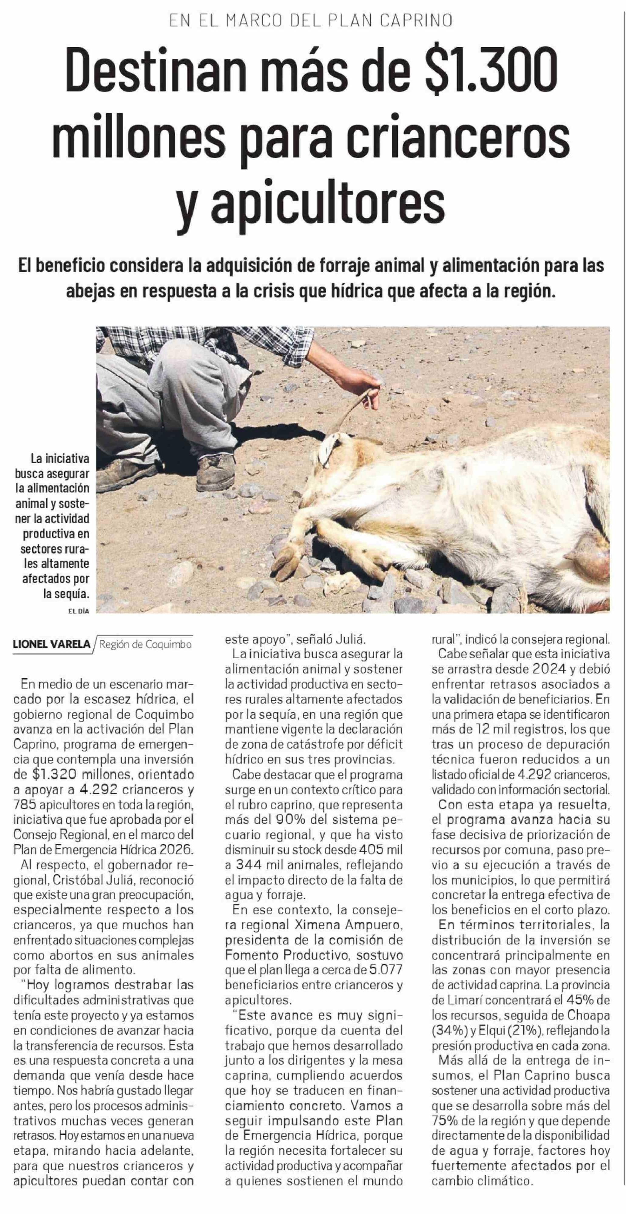 Destinan más de $1.300 millones para crianceros y apicultores