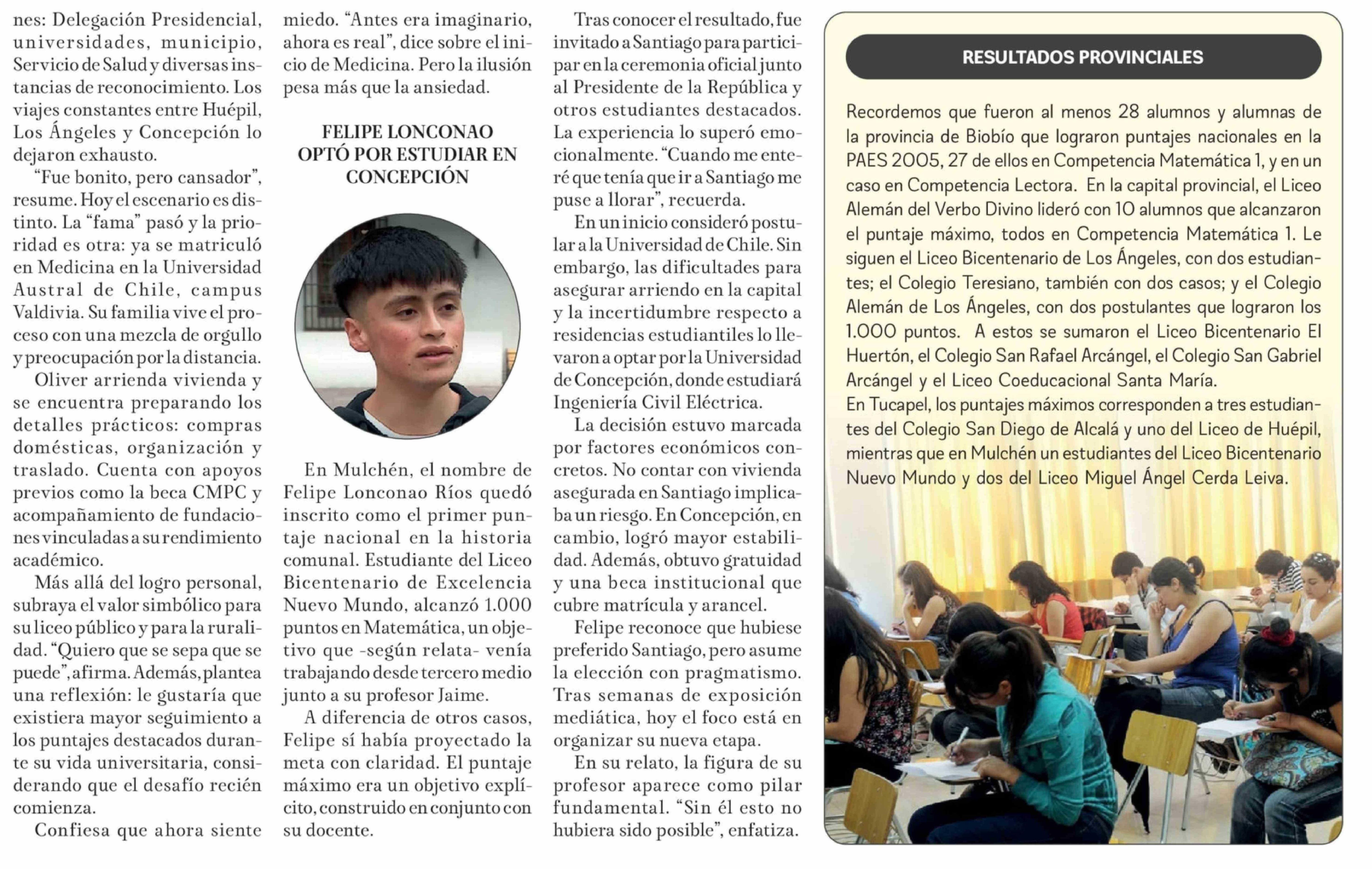 estudiará en la sede central de Tucapel, el nombre de Oliver