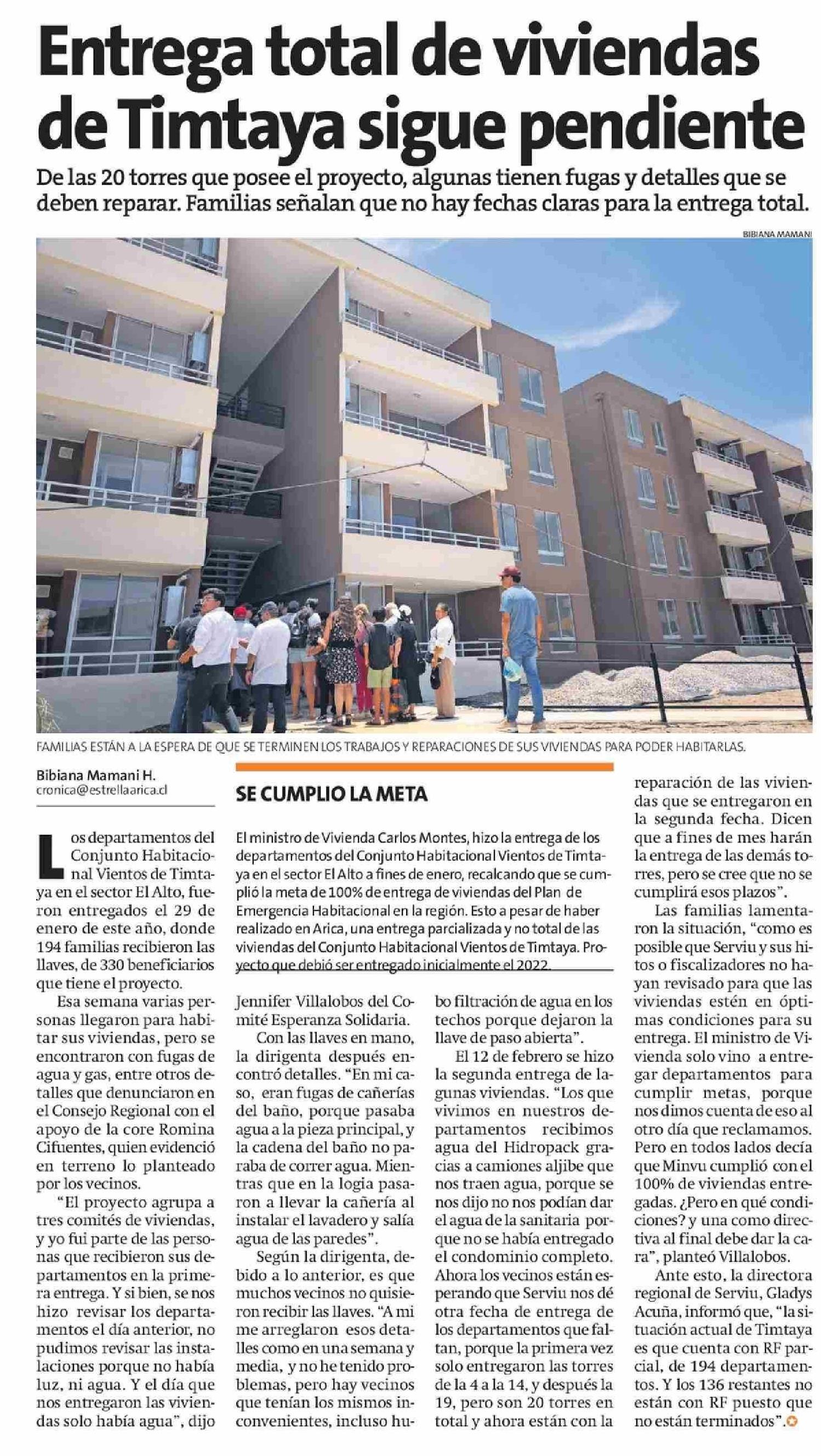 Entrega total de viviendas de Timtaya sigue pendiente