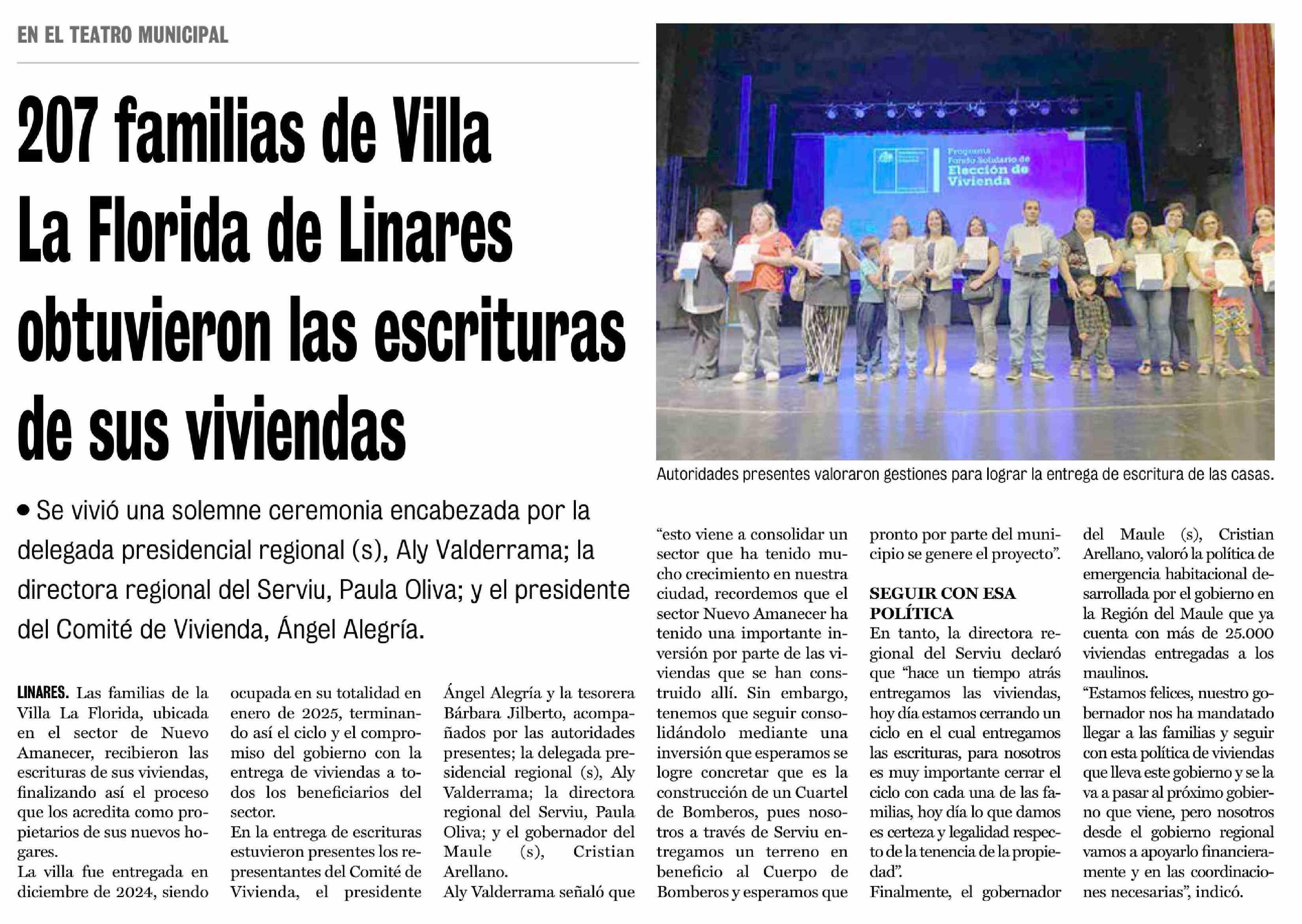 207 Familias de Villa La Florida de Linares obtuvieron las escrituras de sus viviendas