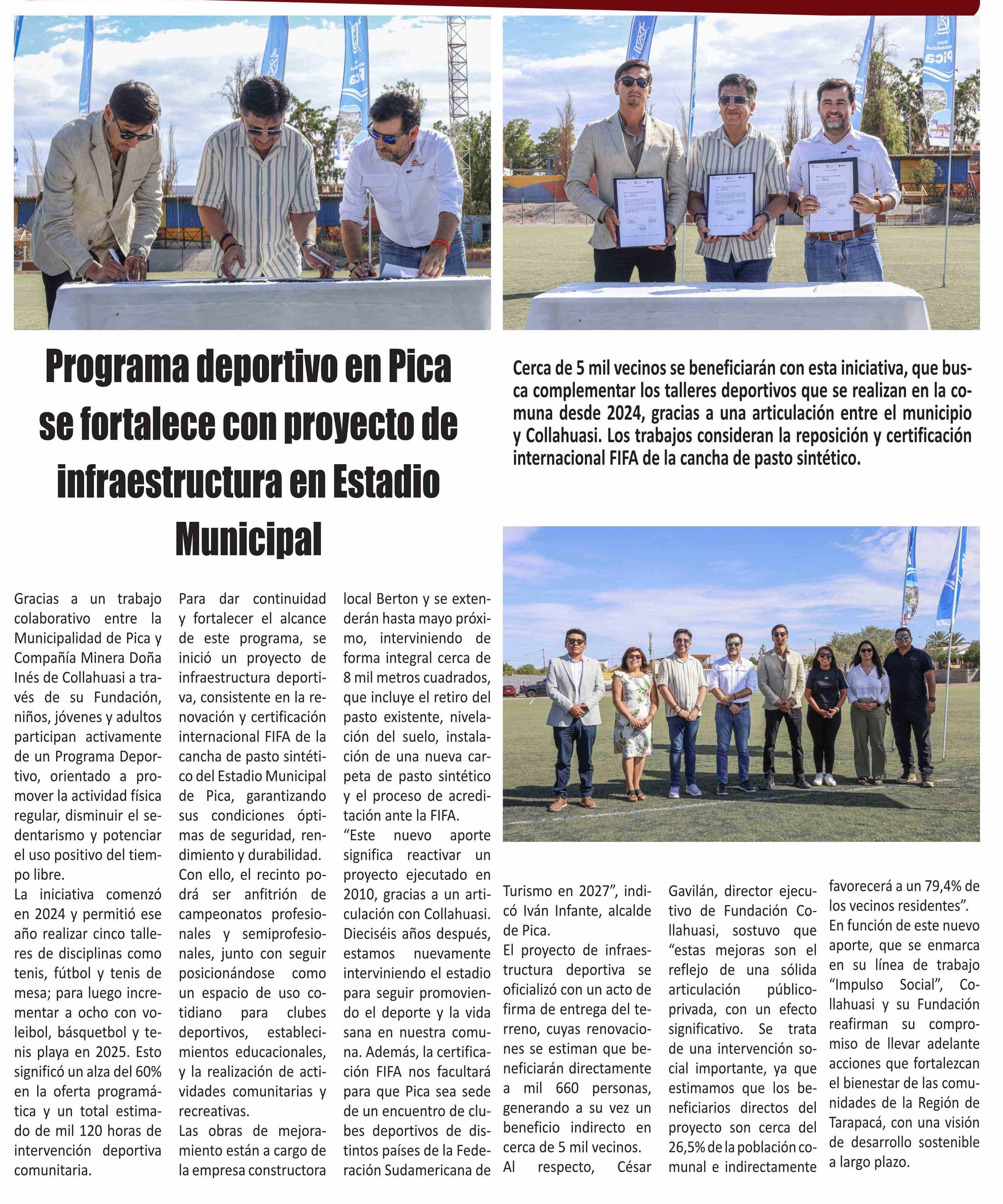 Programa deportivo en Pica se fortalece con proyecto de infraestructura en Estadio Municipal