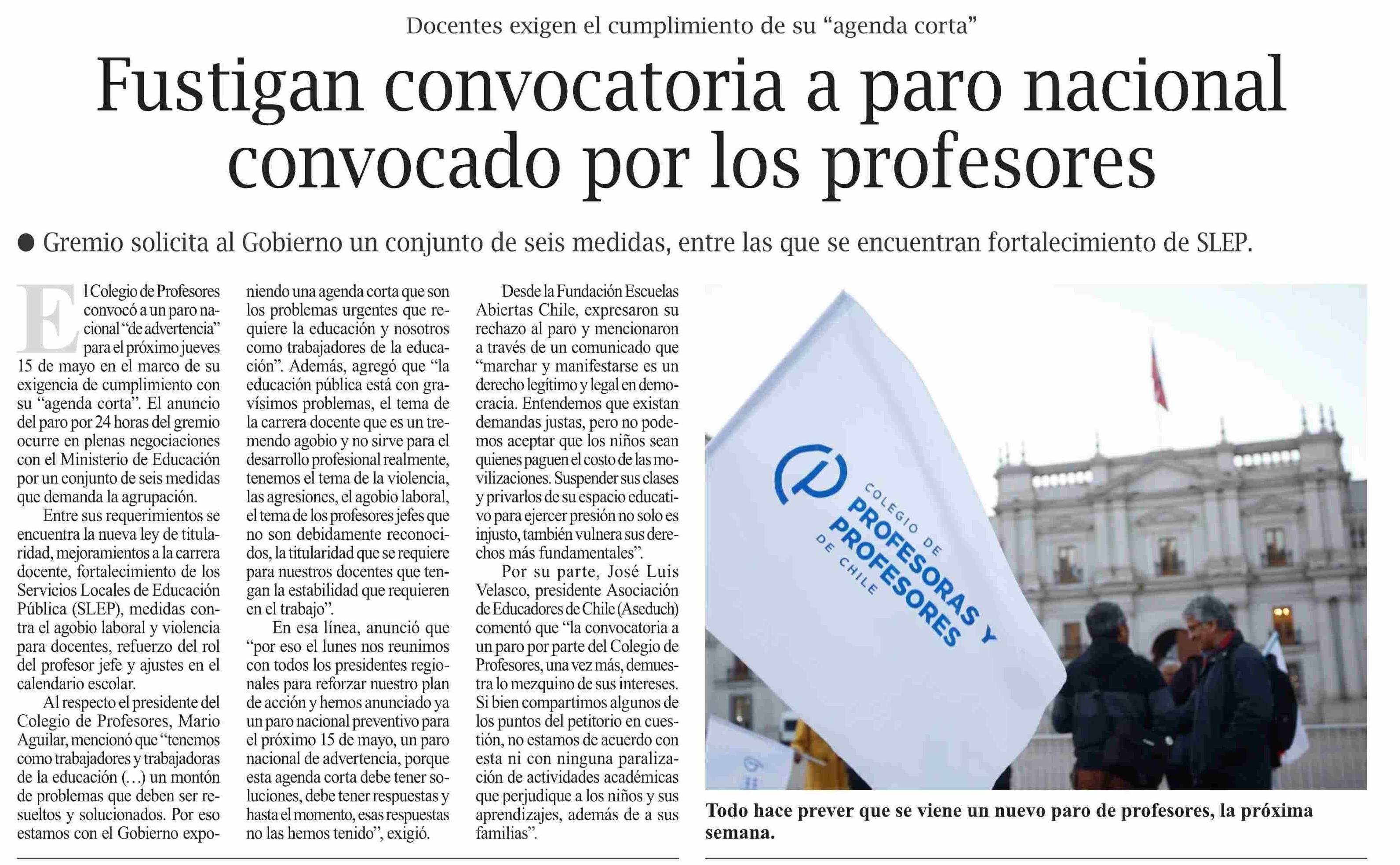 Fustigan convocatoria a paro nacional convocado por los profesores