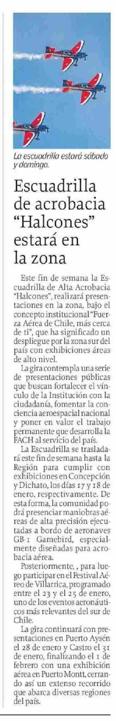 Escuadrilla de acrobacia "Halcones" estará en la zona