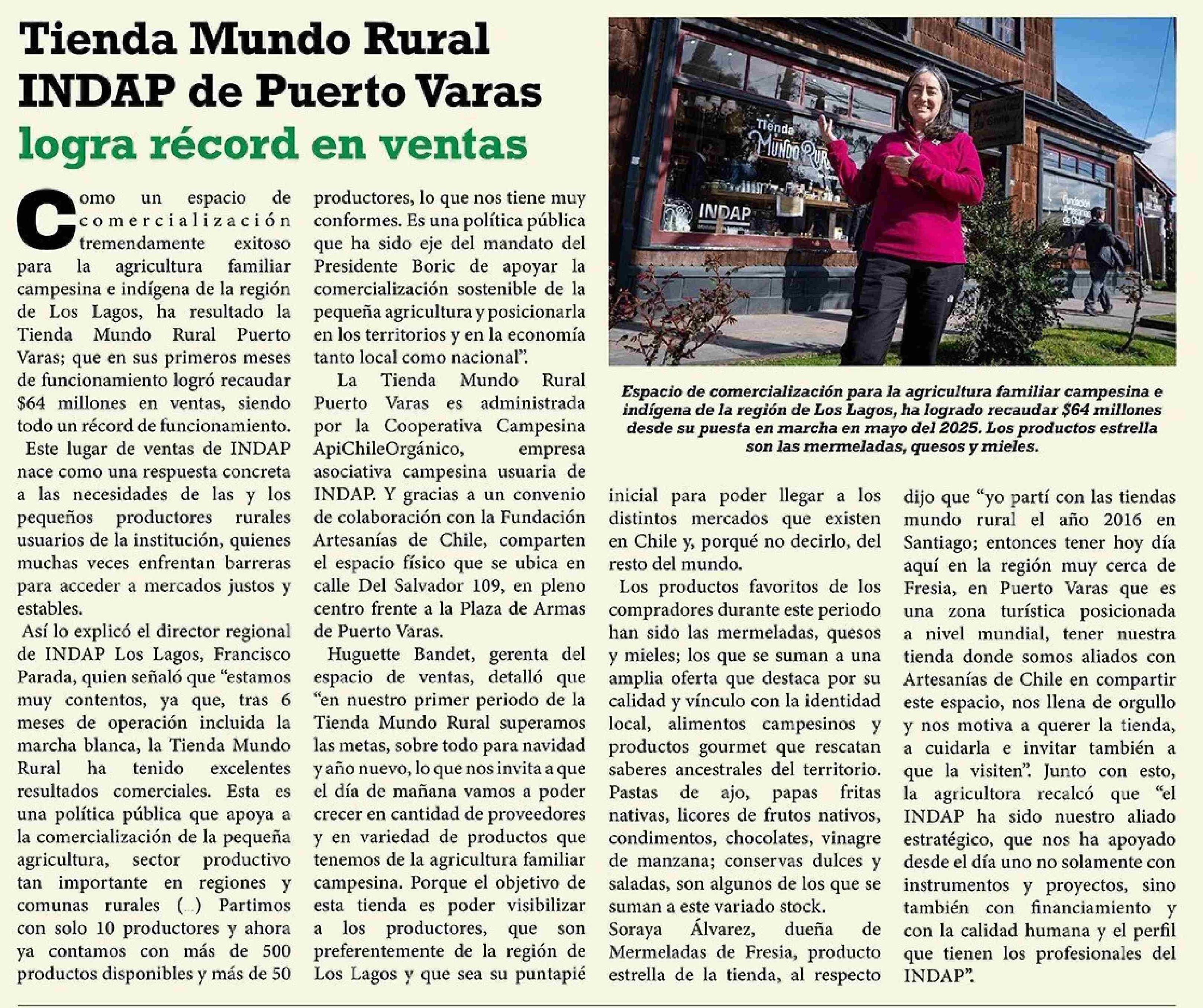 Tienda Mundo Rural INDAP de Puerto Varas logra récord en ventas
