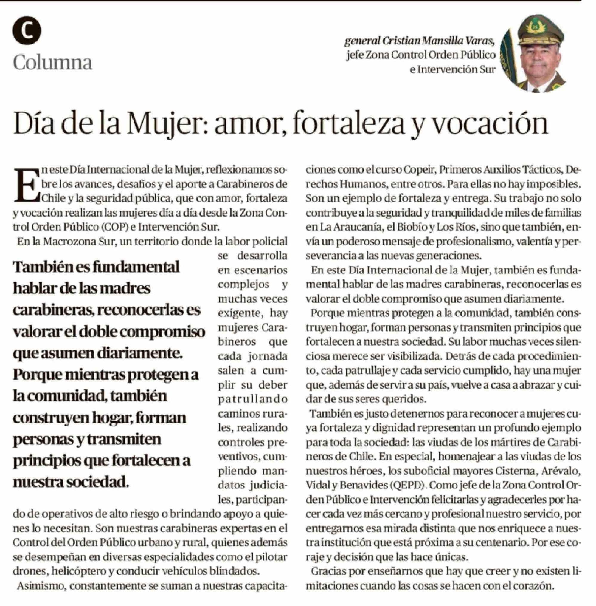 Columnas de Opinión: Día de la Mujer: amor, fortaleza y vocación