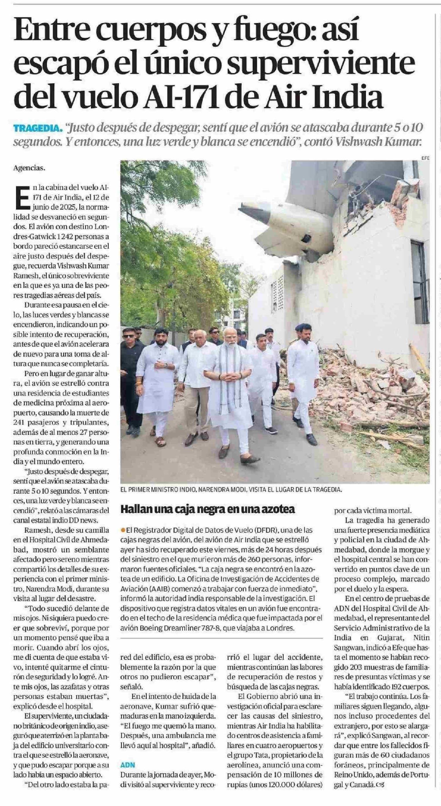 Entre cuerpos y fuego: así escapó el único superviviente del vuelo AI-171 de Air India