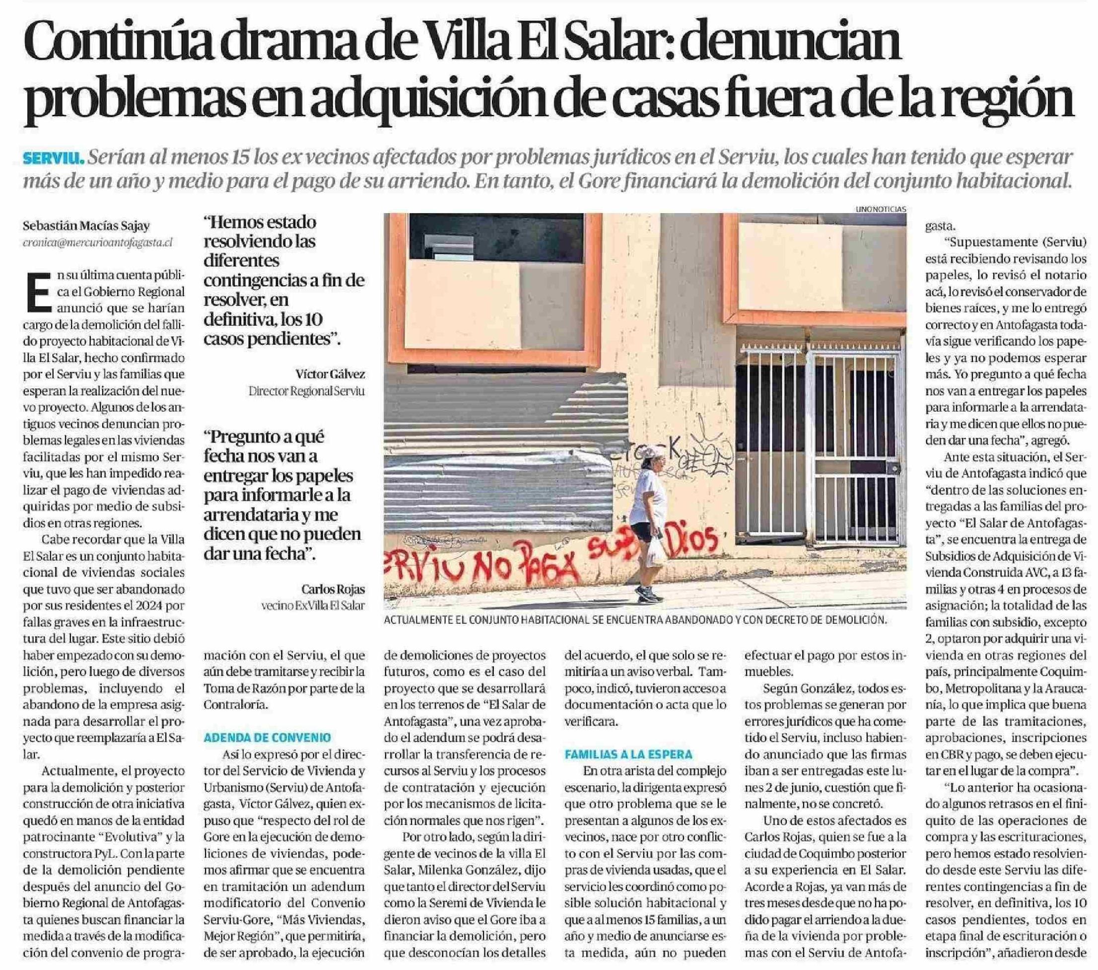 Continúa drama de Villa El Salar: denuncian problemas en adquisición de casas fuera dela región