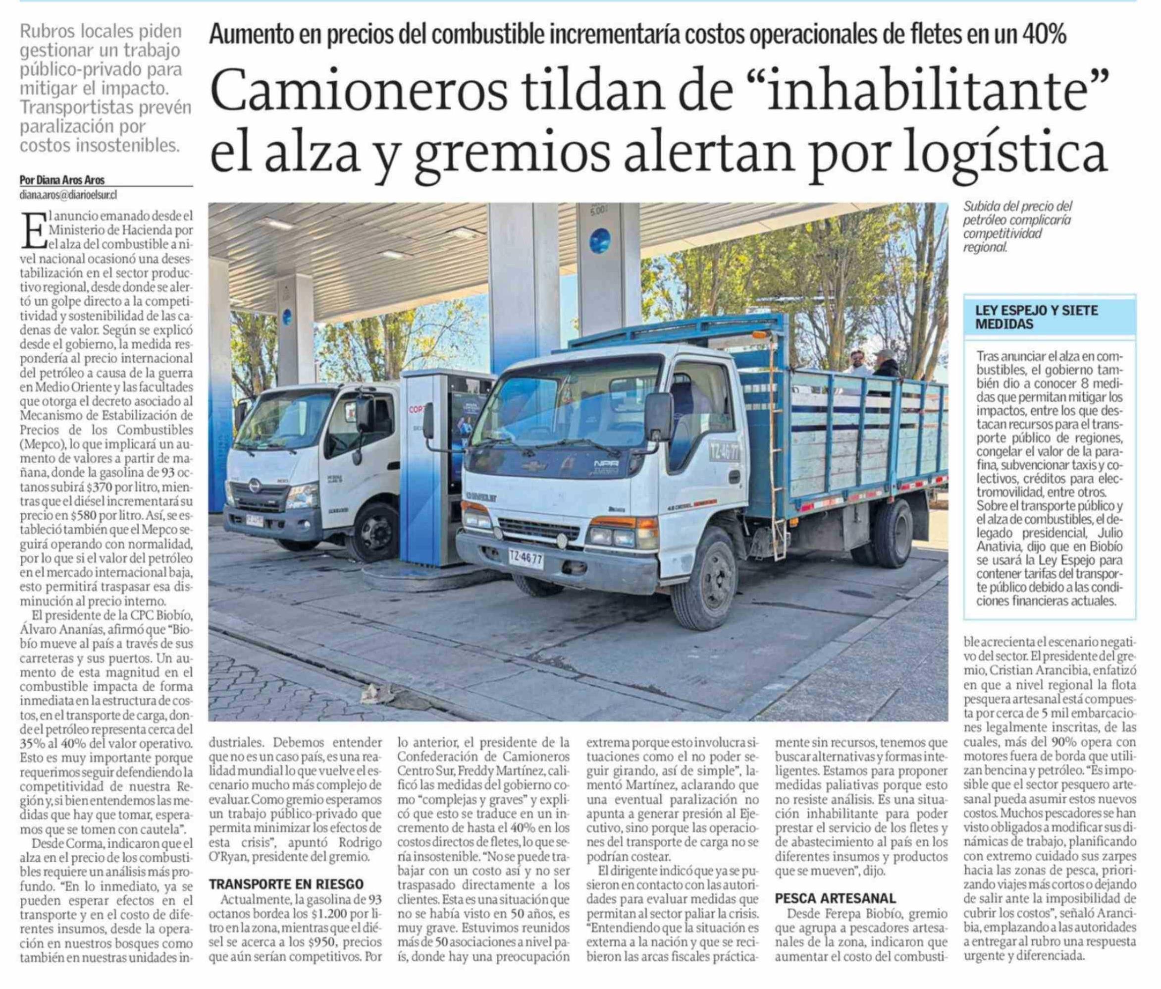 Camioneros tildan de "inhabilitante" el alza y gremios alertan por logística