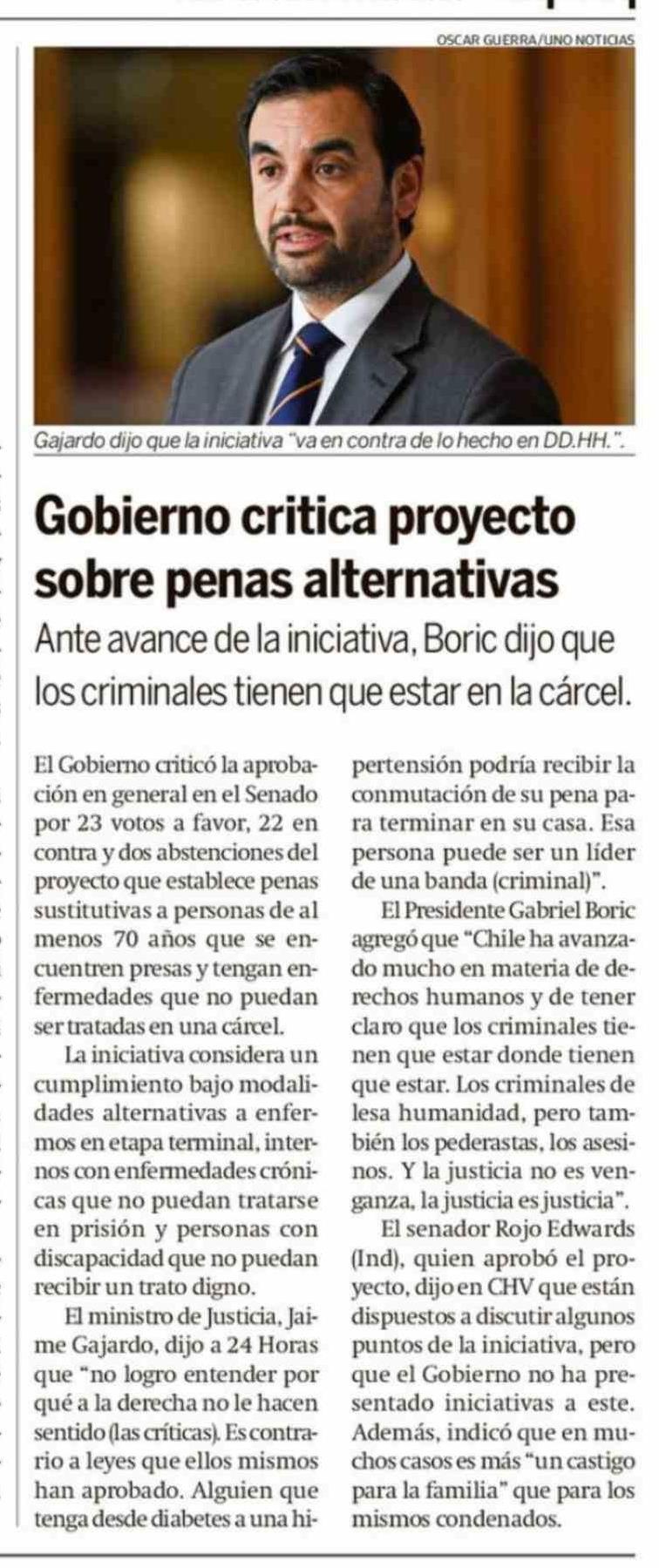 Gobierno critica proyecto sobre penas alternativas