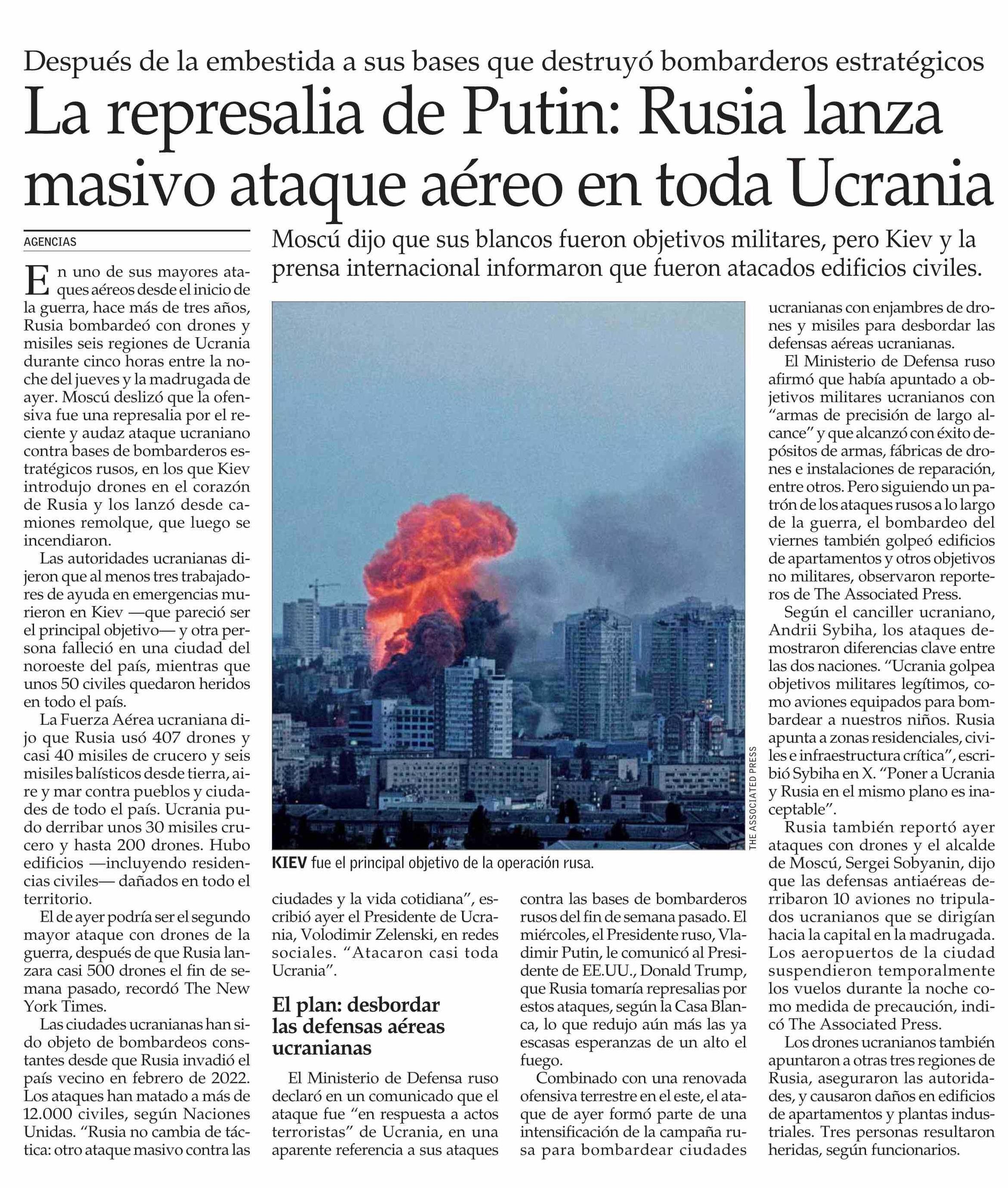 La represalia de Putin: Rusia lanza masivo ataque aéreo en toda Ucrania
