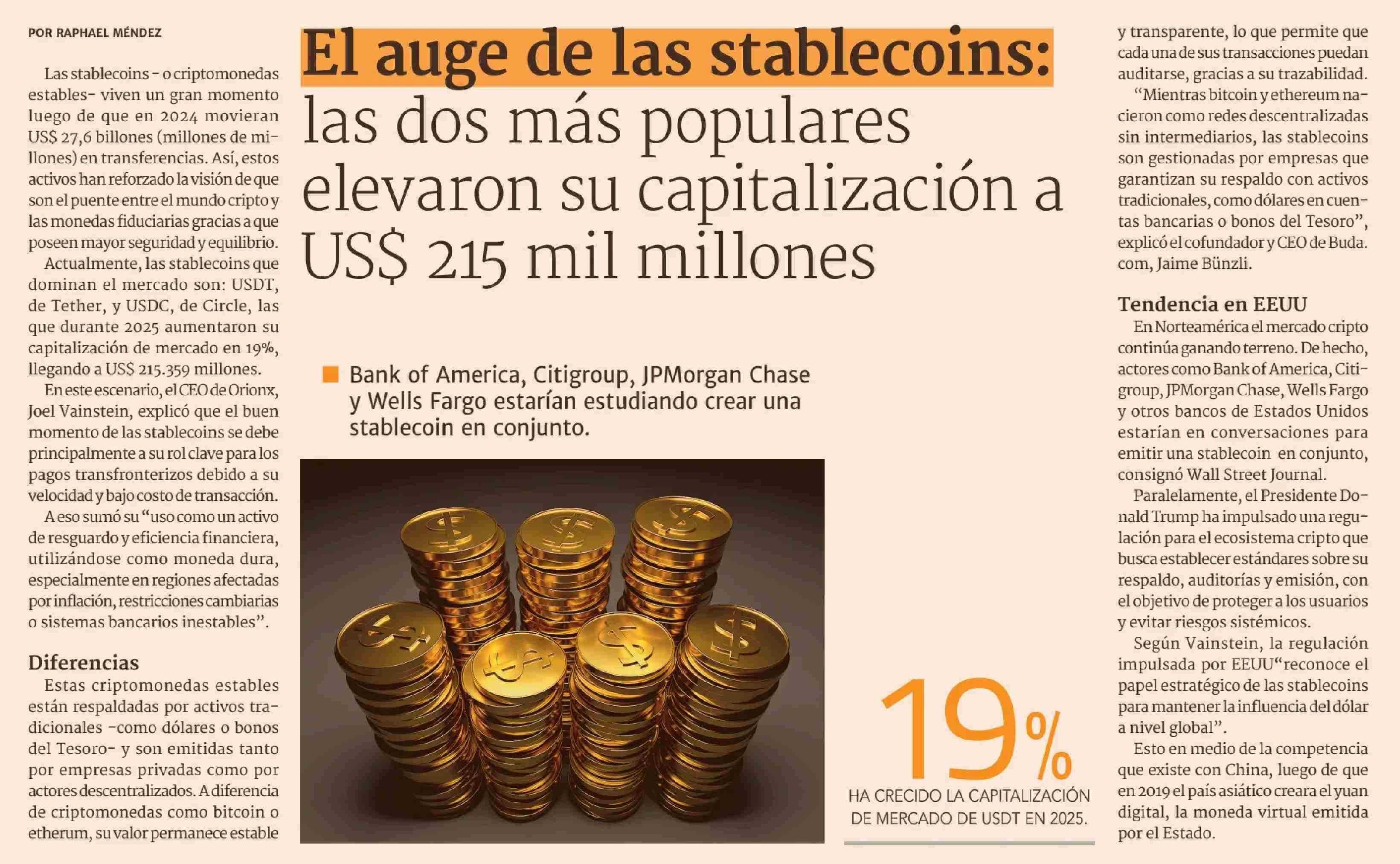 El auge de las stablecoins: las dos más populares elevaron su capitalización a USS 215 mil millones