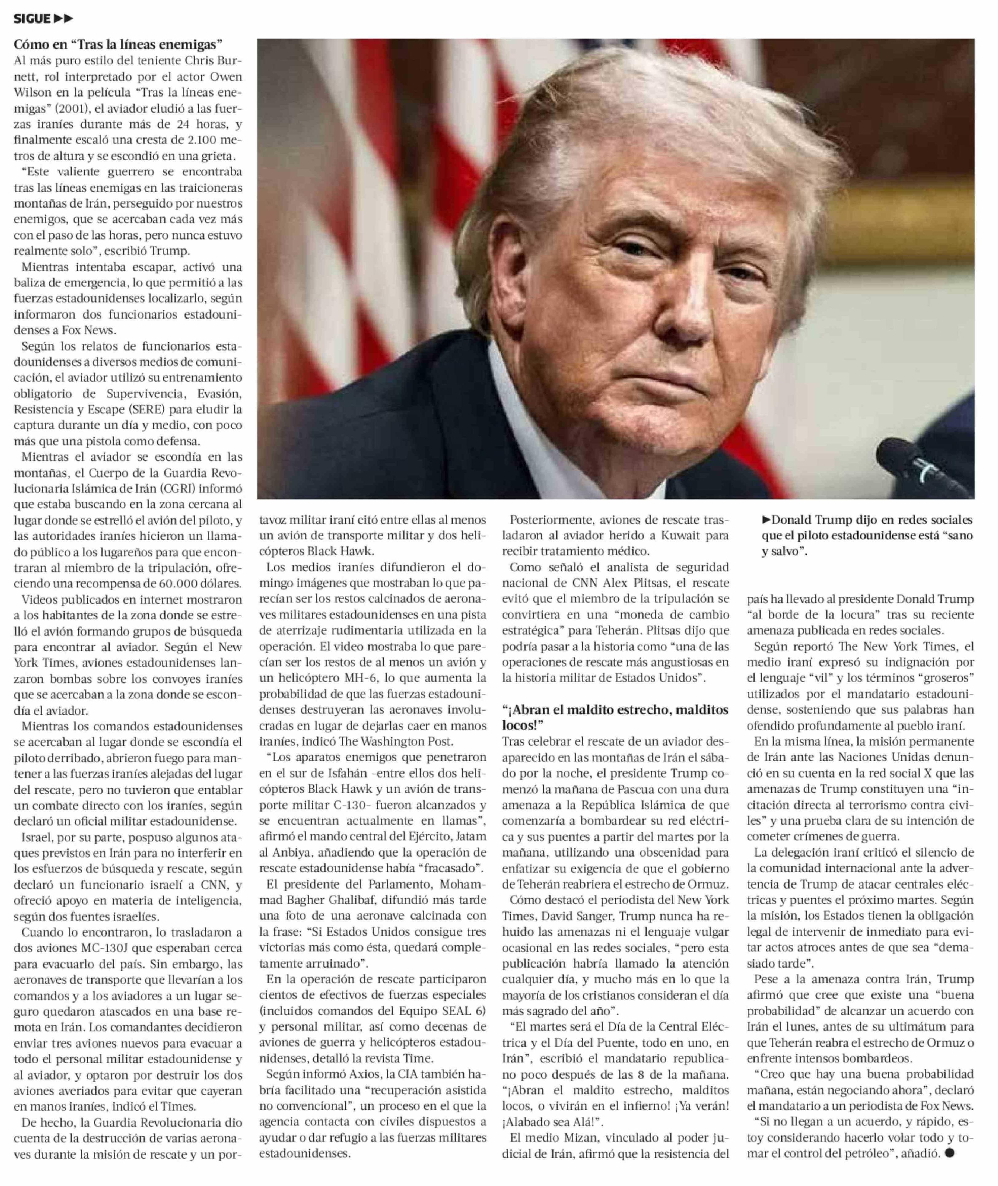 Revelan detalles del rescate de piloto de F-15 de EE.UU. a horas de cumplirse ultimátum de Trump contra Irán