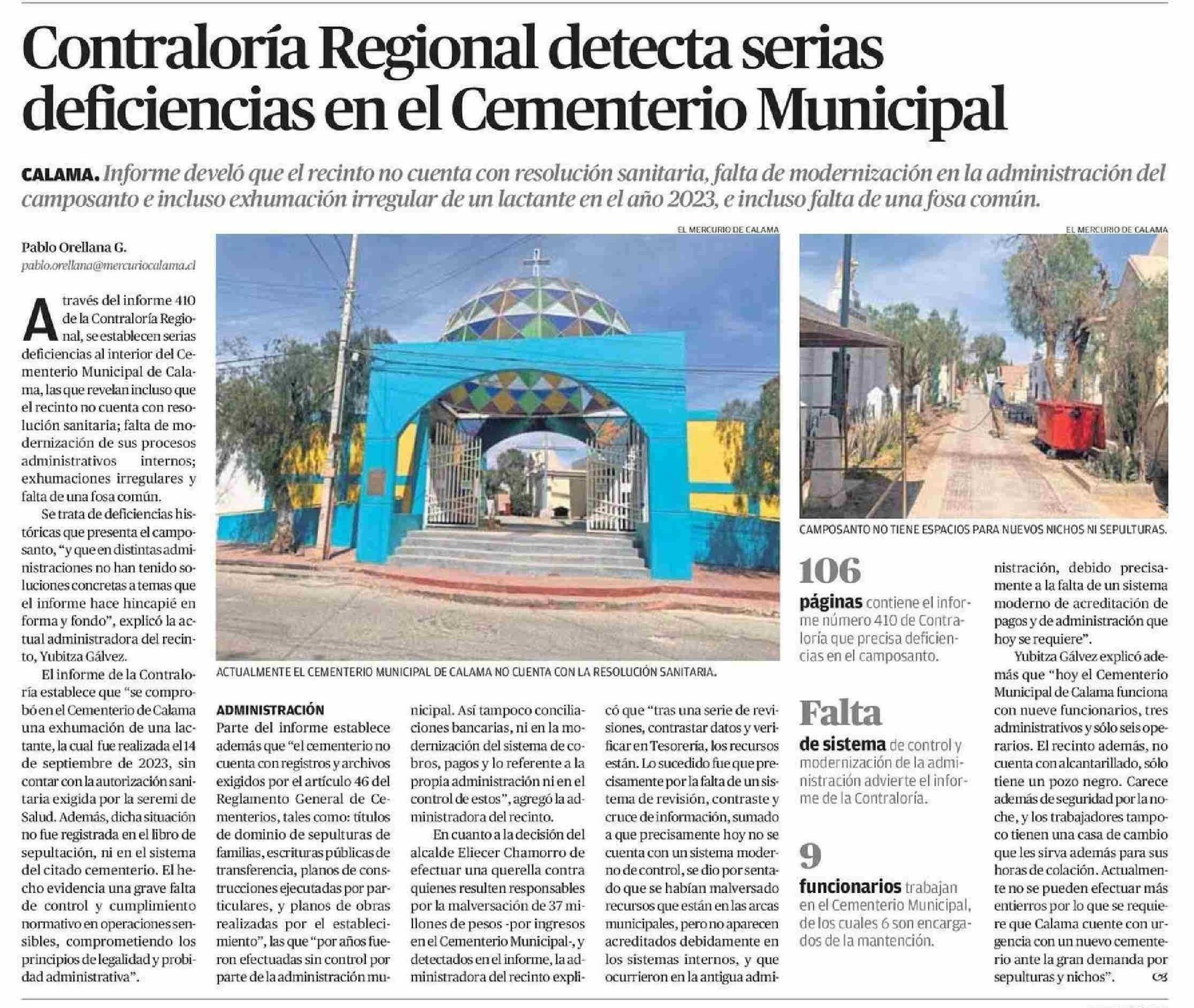 Título: Contraloría Regional detecta serias deficiencias en el Cementerio Municipal