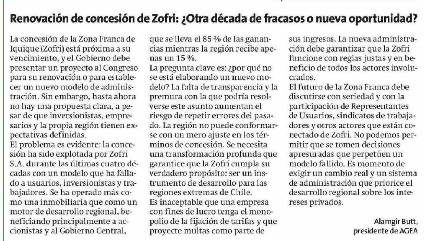 Cartas: Renovación de concesión de Zofri: ¿Otra década de fracasos o nueva oportunidad?