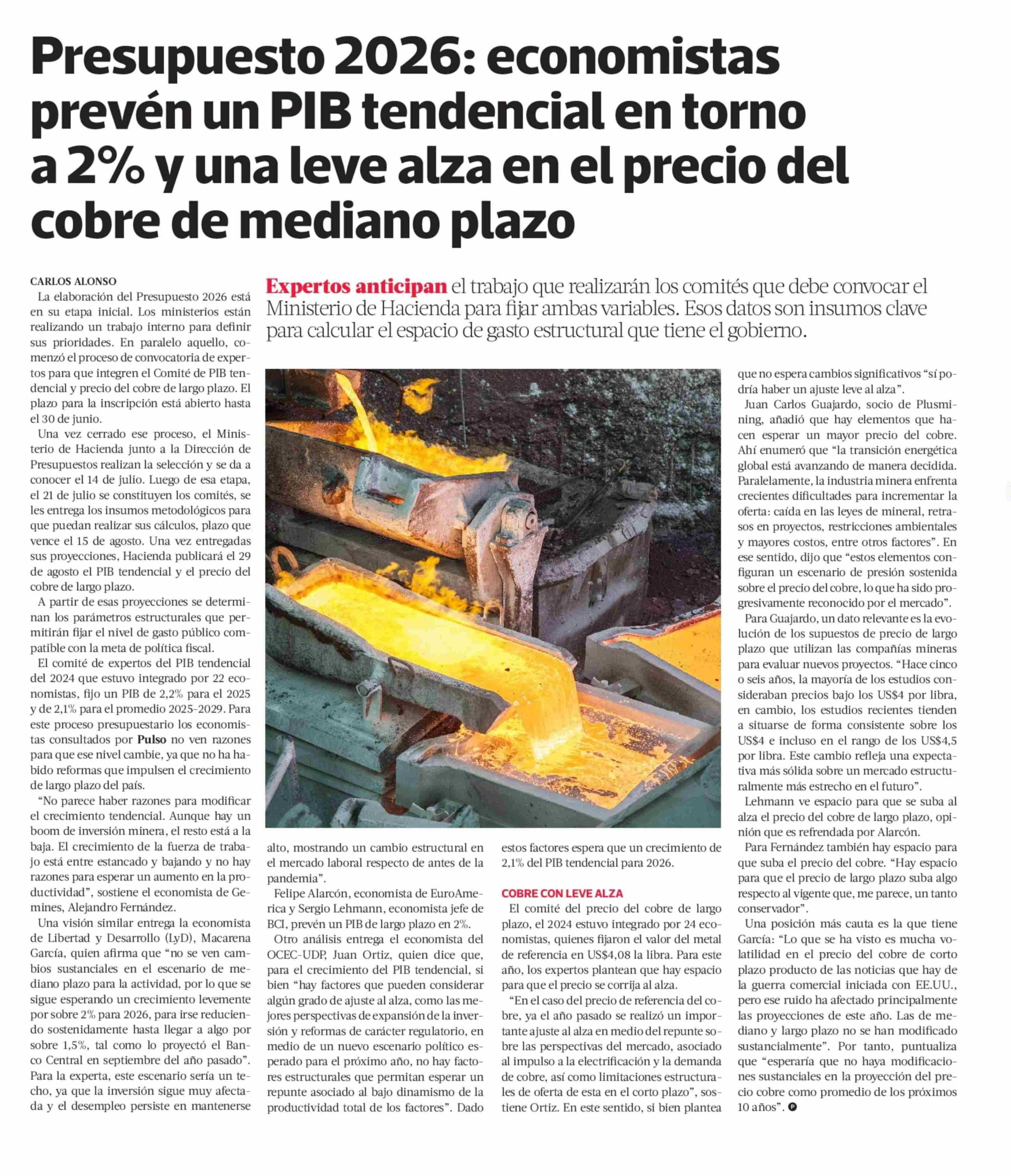 Presupuesto 2026: economistas prevén un PIB tendencial en torno a 2% y una leve alza en el precio del cobre de mediano plazo