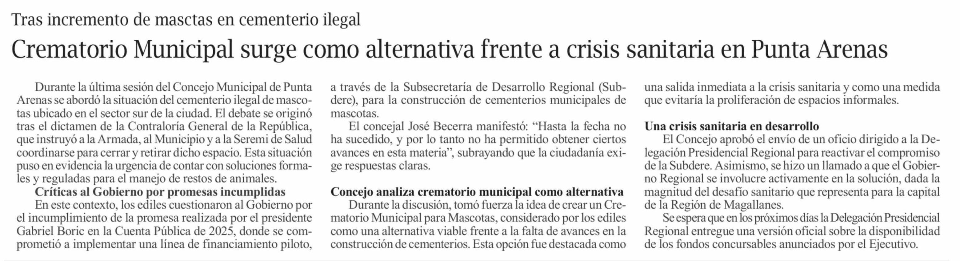 Crematorio Municipal surge como alternativa frente a crisis sanitaria en Punta Arenas