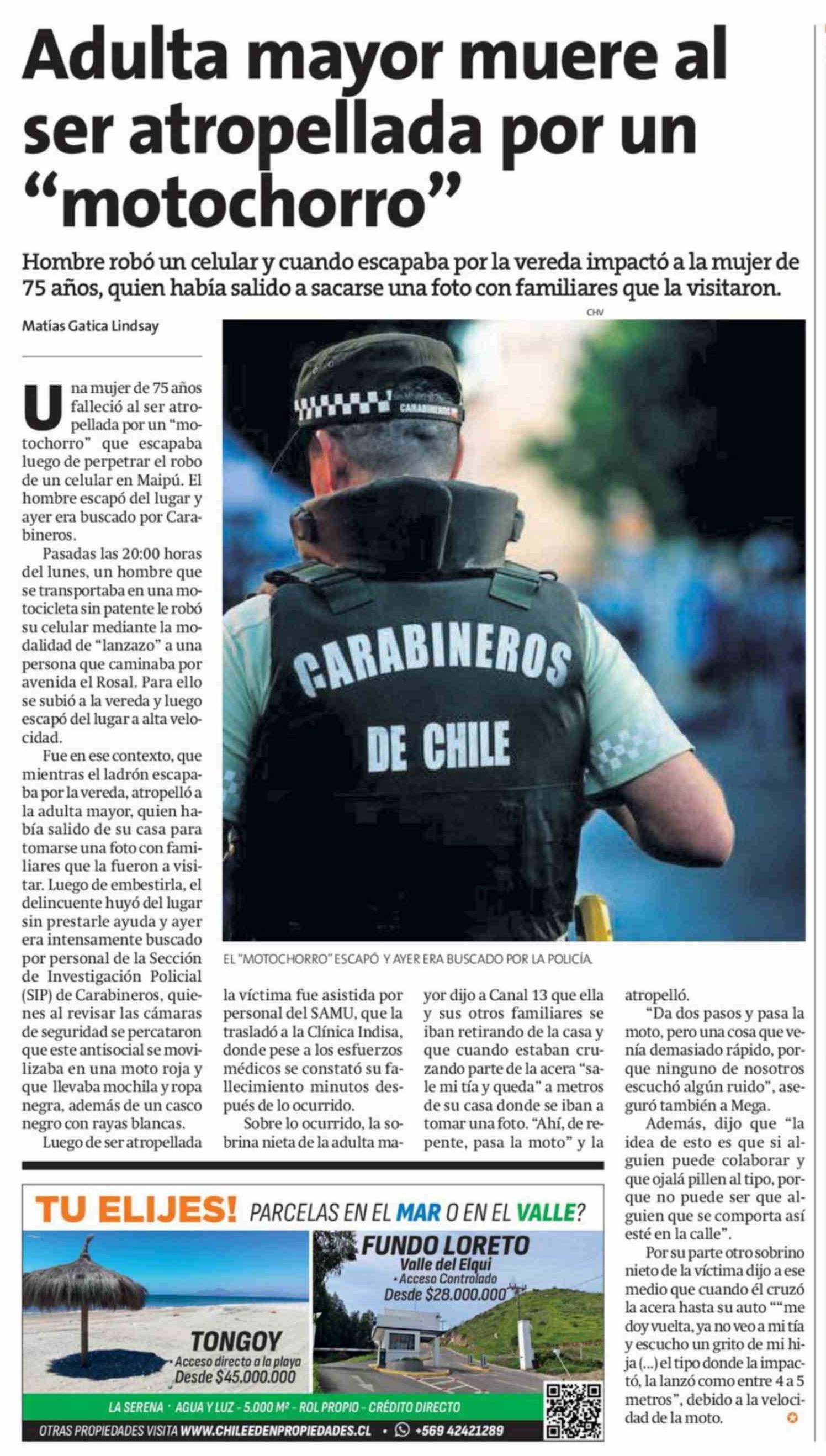 Adulta mayor muere al ser atropellada por un "motochorro"