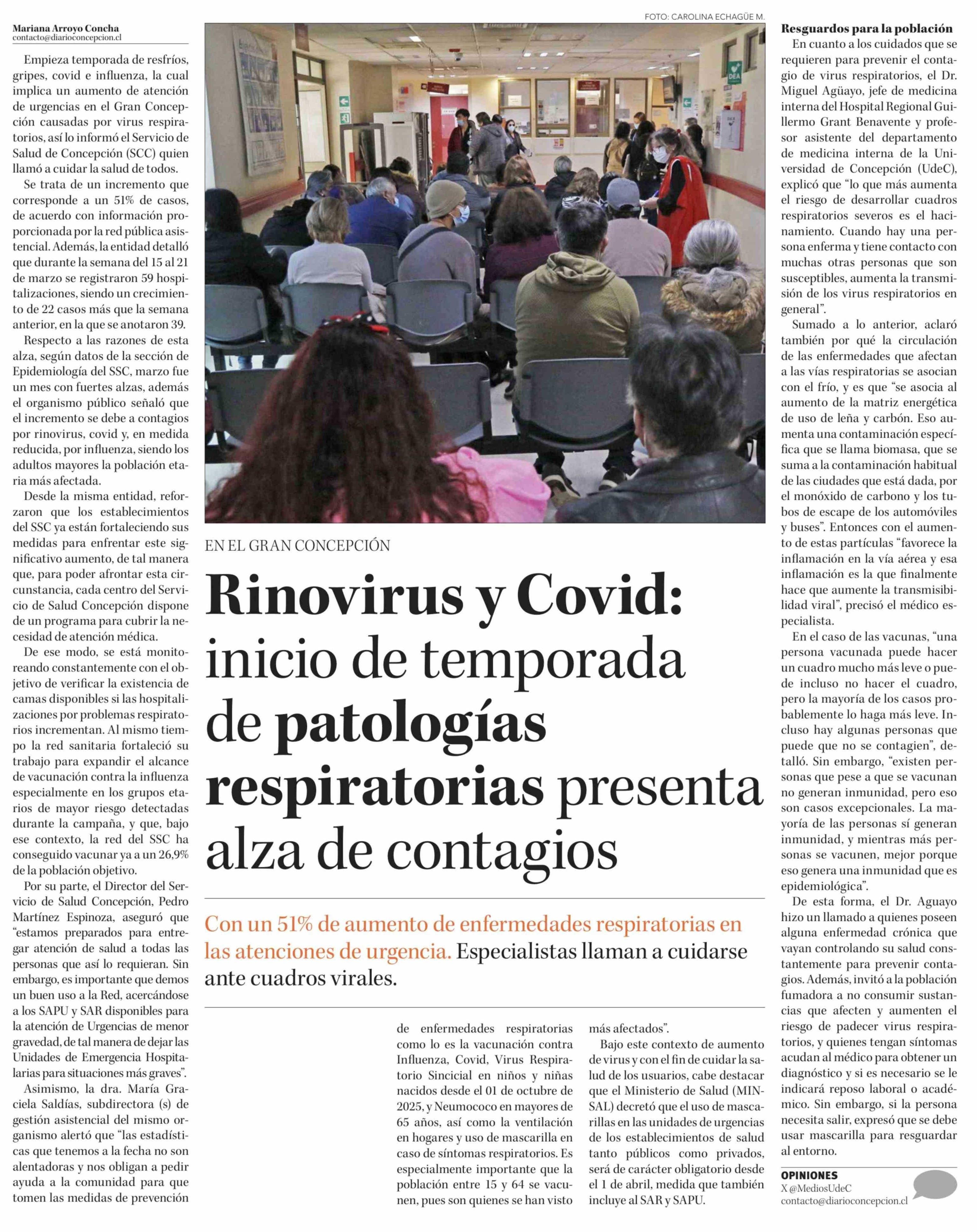 Título: Rinovirus y Covid: inicio de temporada de patologías respiratorias presenta alza de contagios
