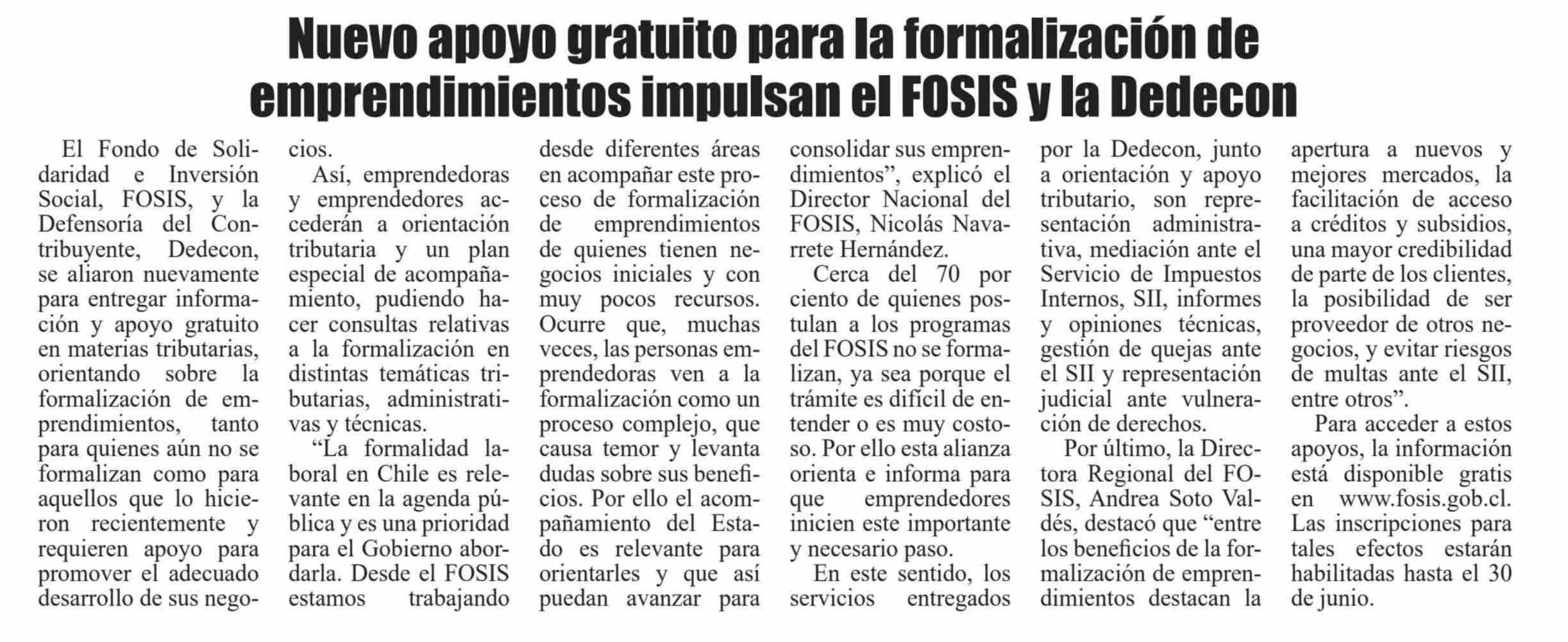Nuevo apoyo gratuito para la formalización de emprendimientos impulsan el FOSIS y la Dedecon