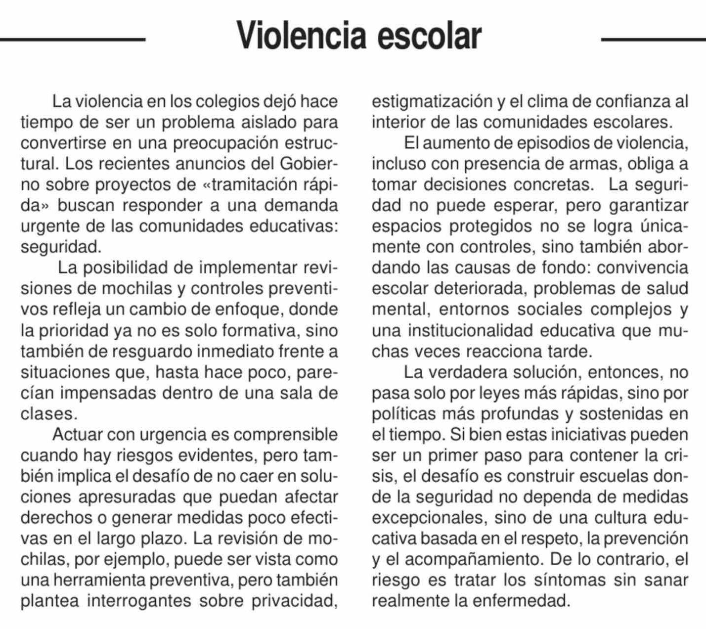 Título: Editorial: Violencia escolar