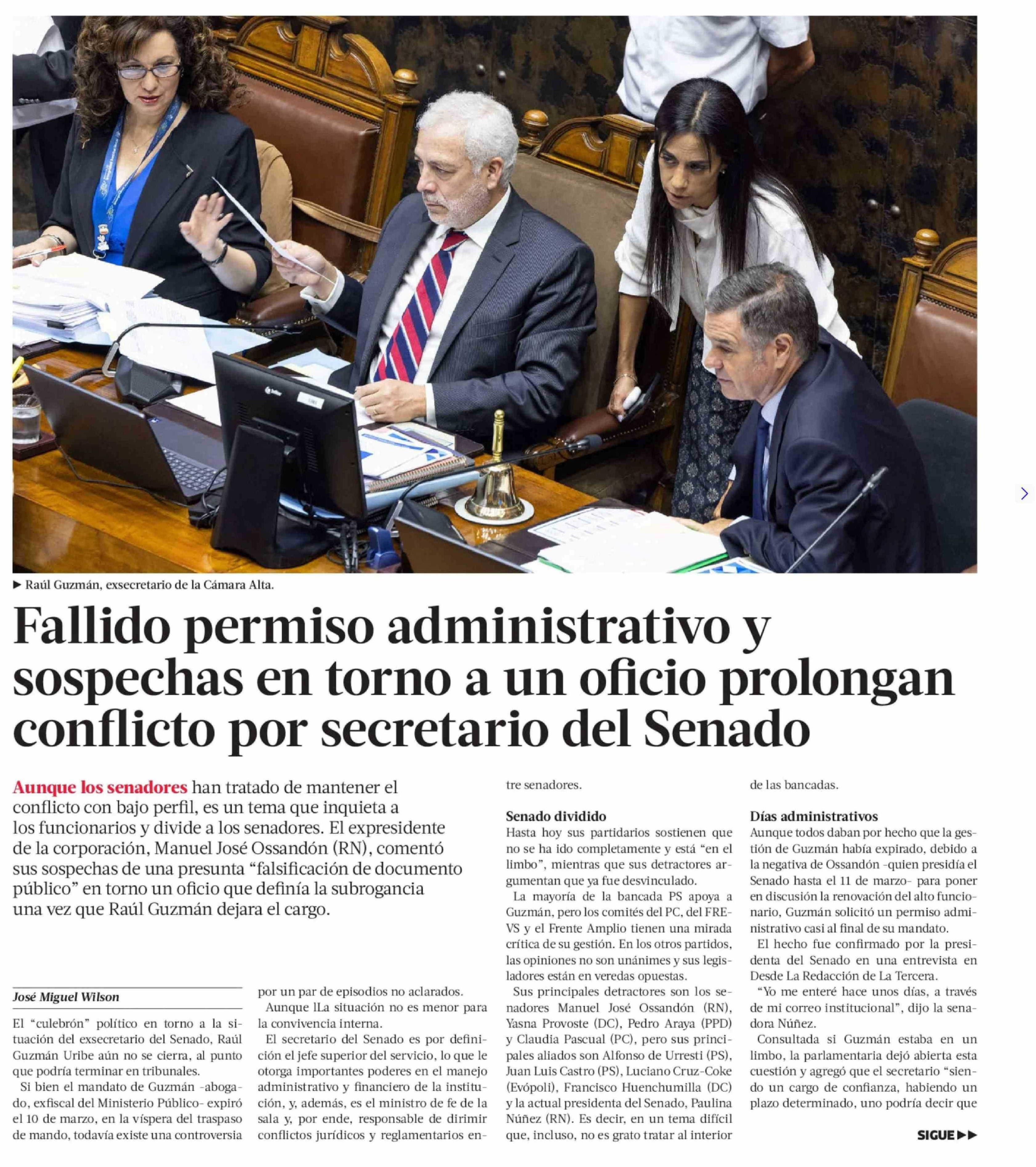 Fallido permiso administrativo y sospechas en torno a un oficio prolongan conflicto por secretario del Senado