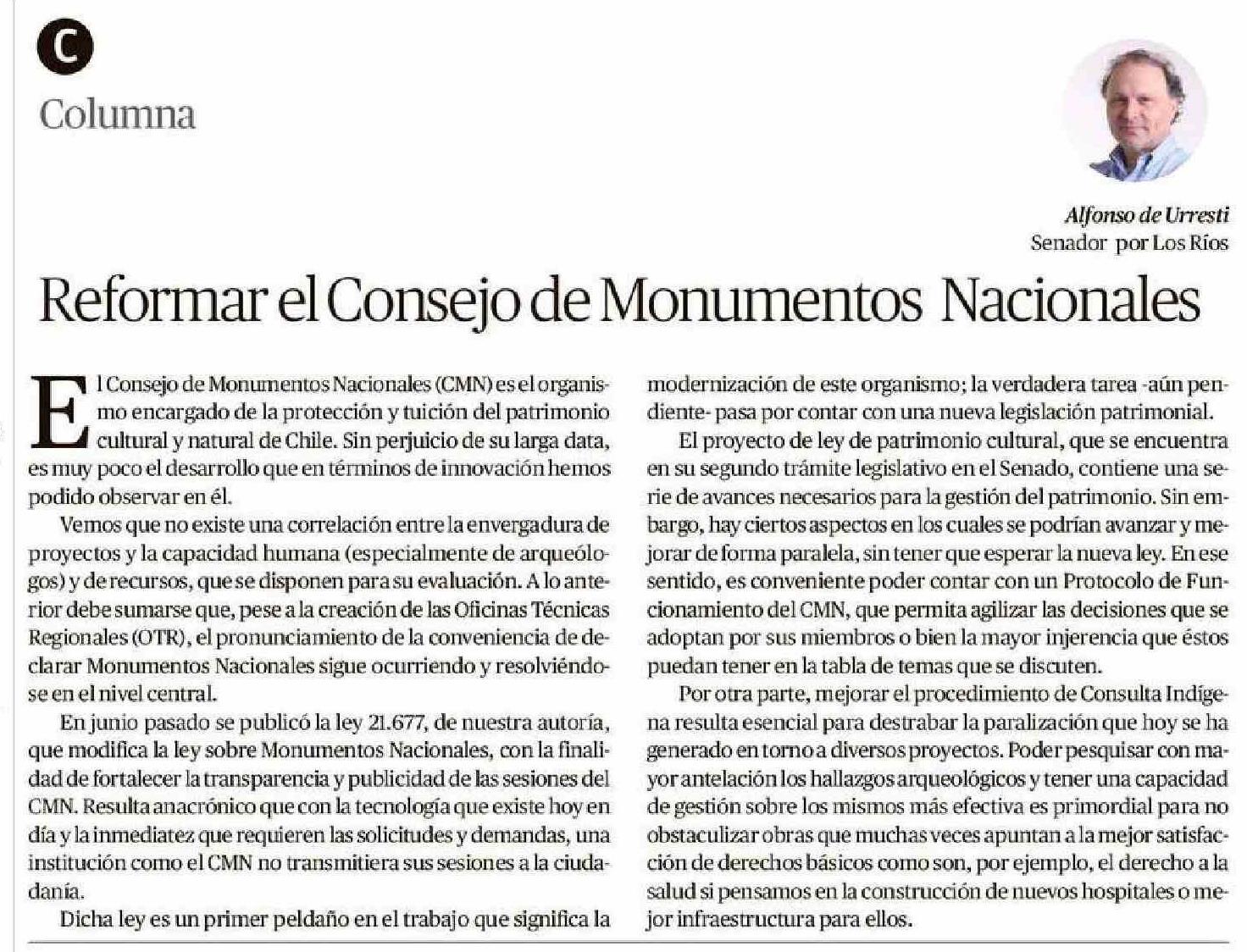 Columnas de Opinión: Reformar el Consejo de Monumentos Nacionales