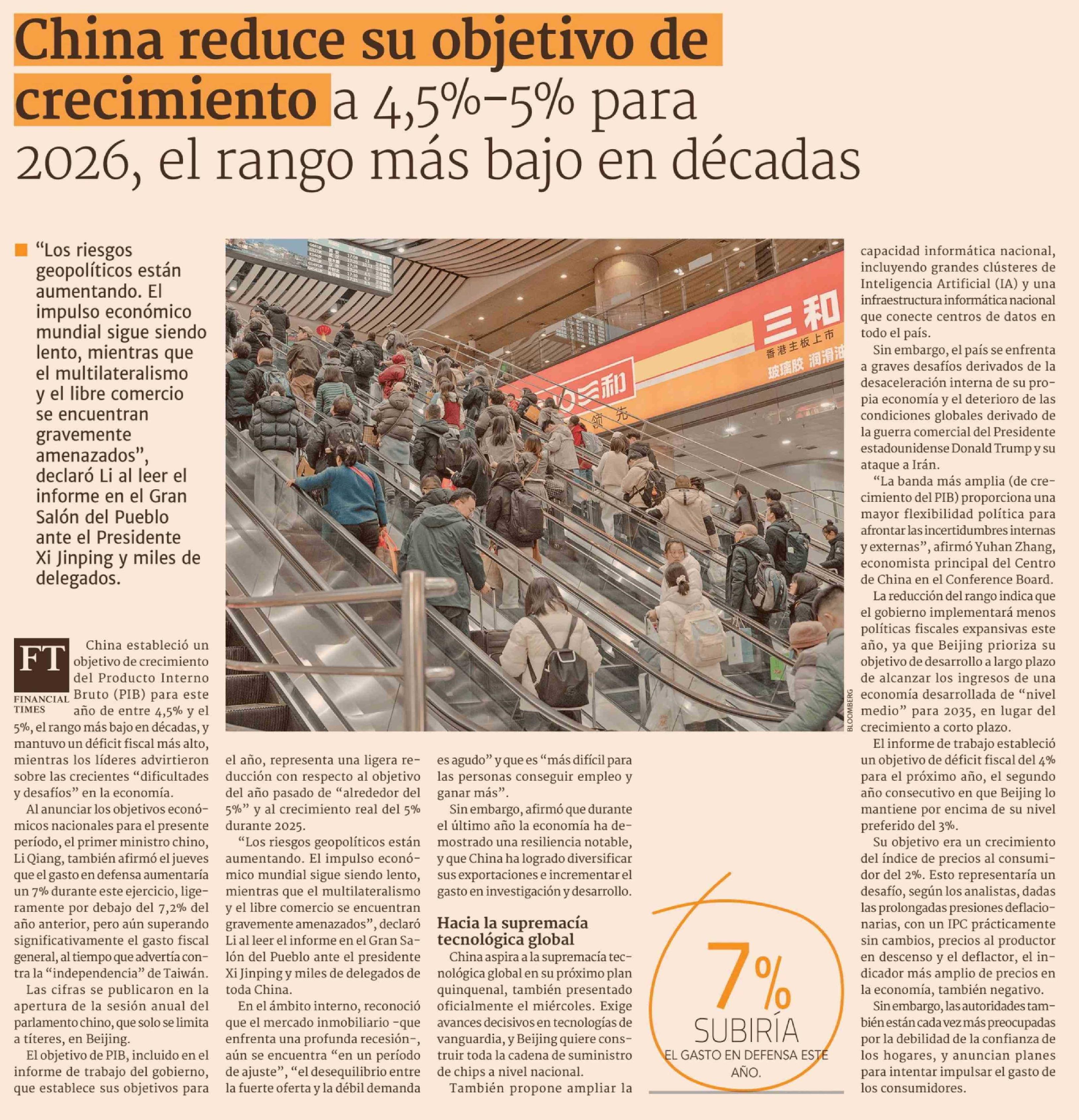 China reduce su objetivo de crecimiento a 4,5%-5% para 2026, el rango más bajo en décadas