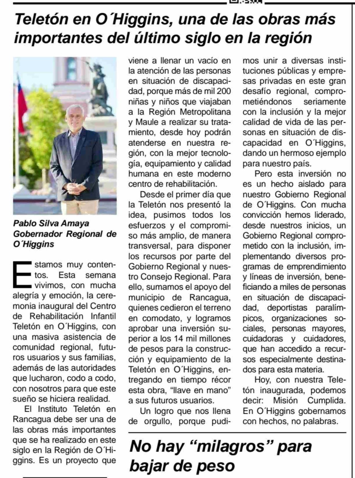 Columnas de Opinión: Teletón en O'Higgins, una de las obras más importantes del último siglo en la región