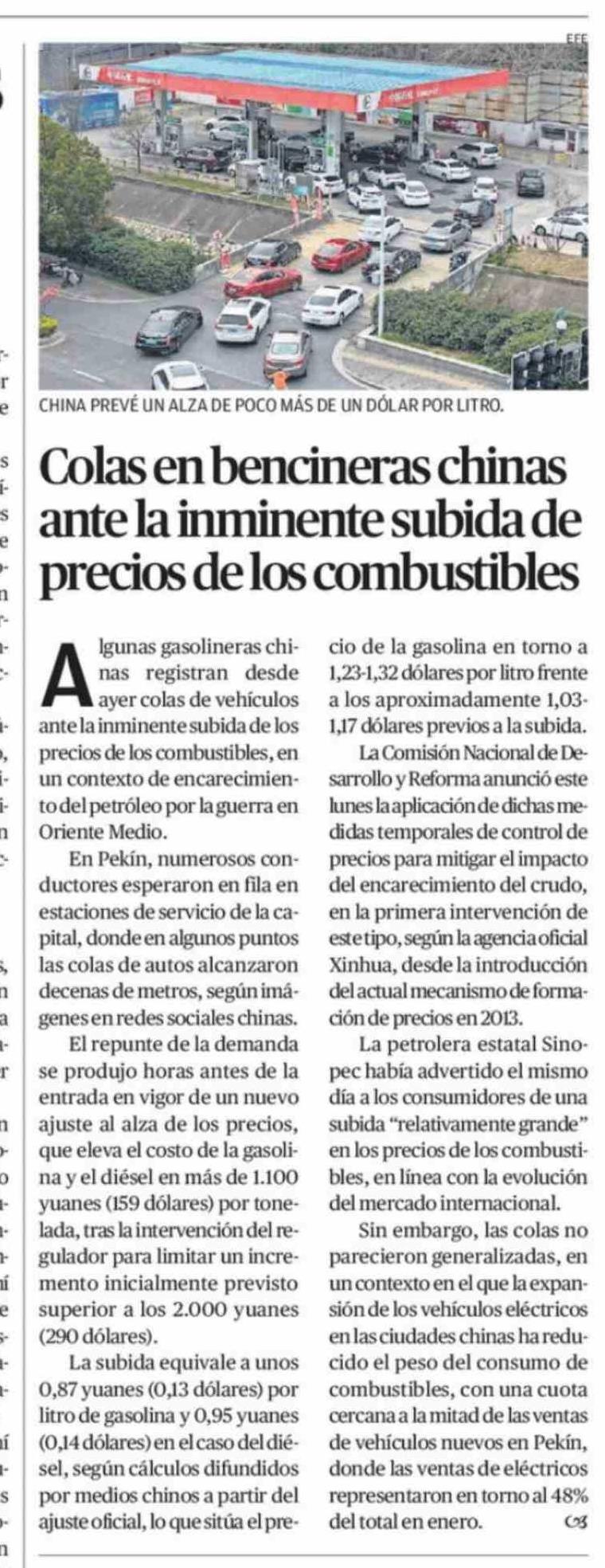 Colas en bencineras chinas ante la inminente subida de precios de los combustibles