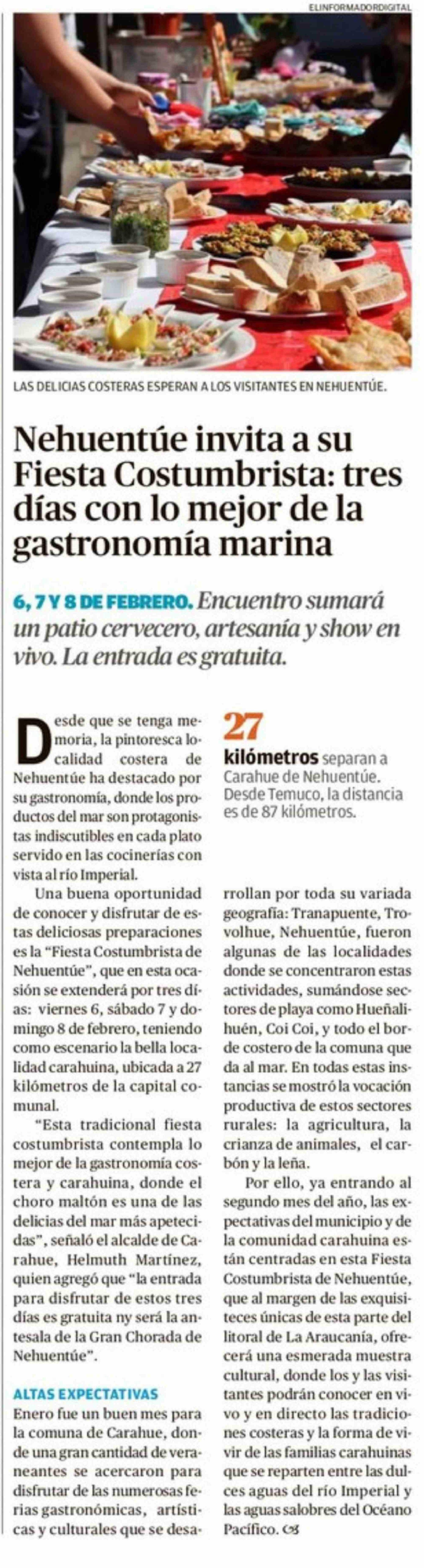 Nehuentúe invita a su Fiesta Costumbrista: tres días con lo mejor de la gastronomía marina
