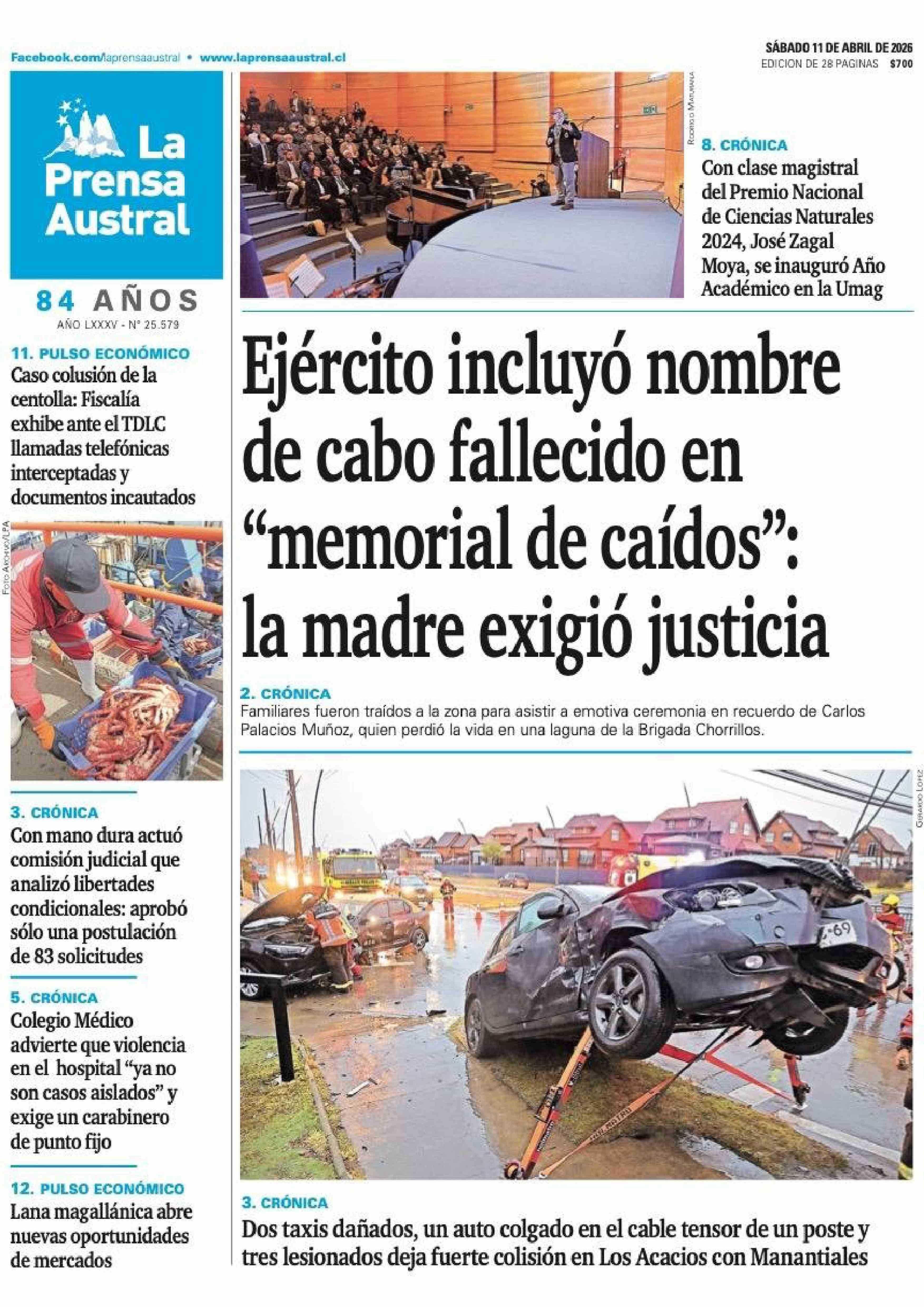 PORTADA LA PRENSA AUSTRAL CHILE